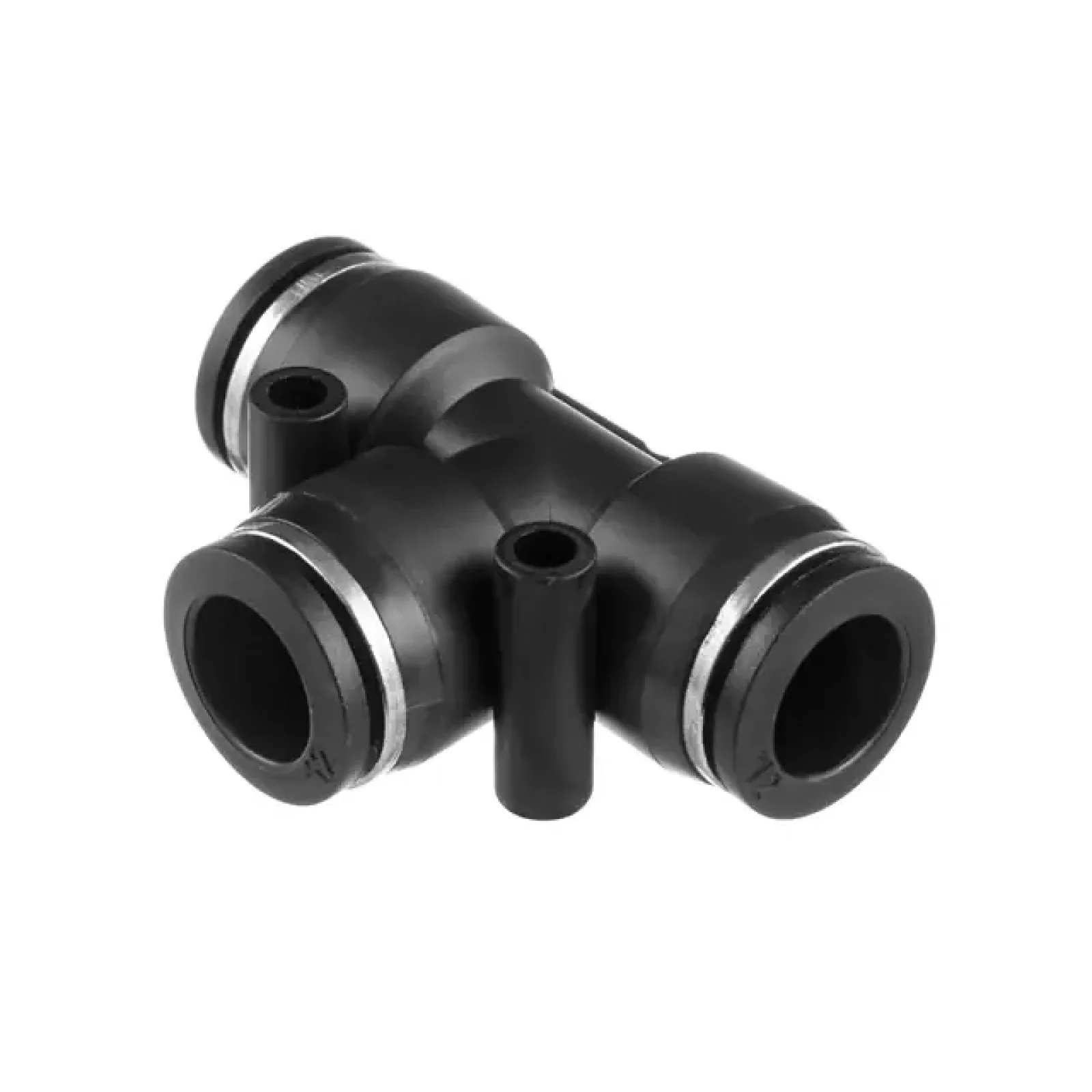 Цангове з'єднання T-подібної форми використовується для створення пневматичних магістралей і для монтажу пневмосистем. Забезпечує повністю герметичне з'єднання різних пневматичних шлангів без пошкодження їхньої поверхні (PU, PE, PA) - поліуретанових, поліетиленових, поліамідних тощо.