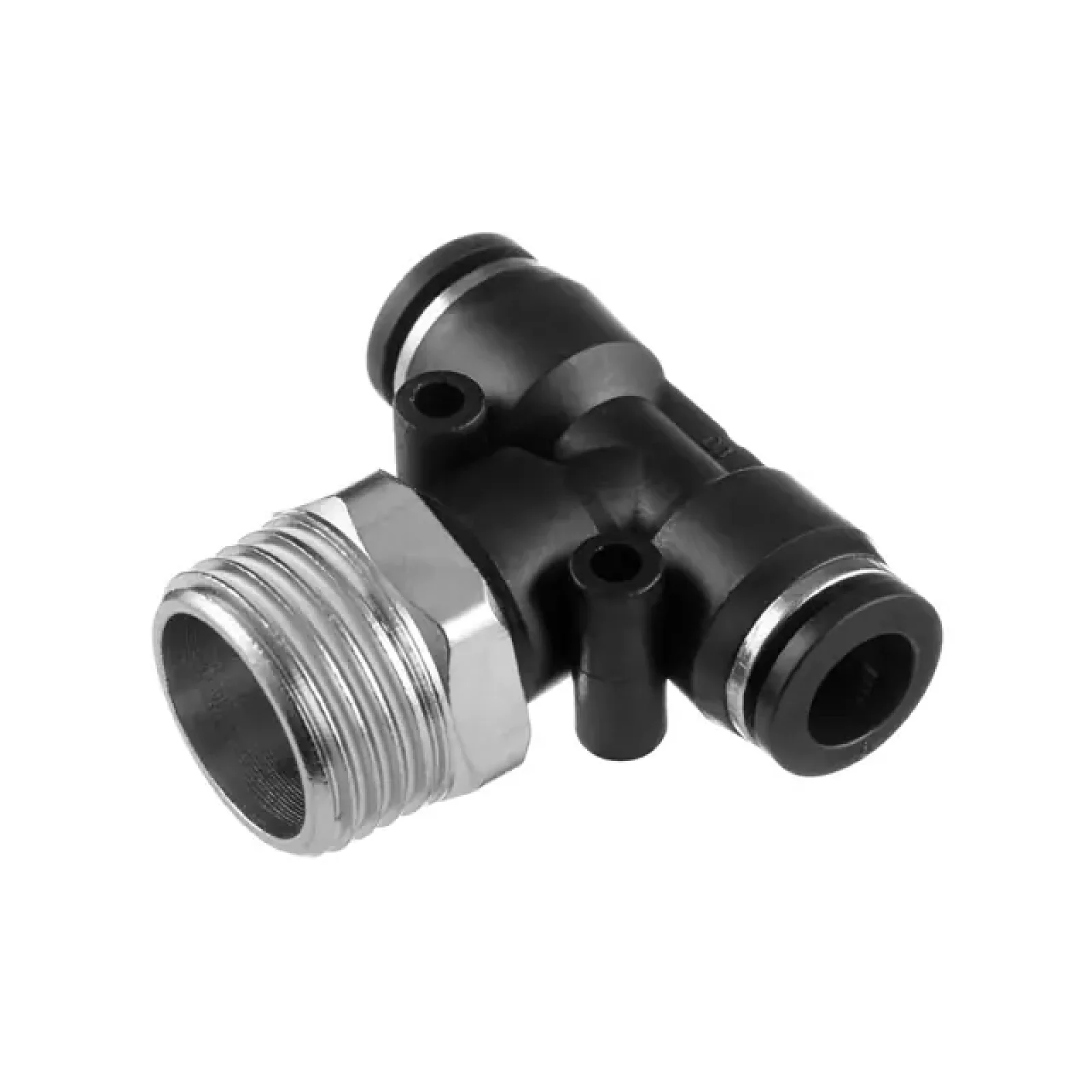 Цангове з'єднання T-подібної форми використовується для створення пневматичних магістралей і для монтажу пневмосистем. Забезпечує повністю герметичне з'єднання різних пневматичних шлангів без пошкодження їхньої поверхні (PU, PE, PA) - поліуретанових, поліетиленових, поліамідних тощо.