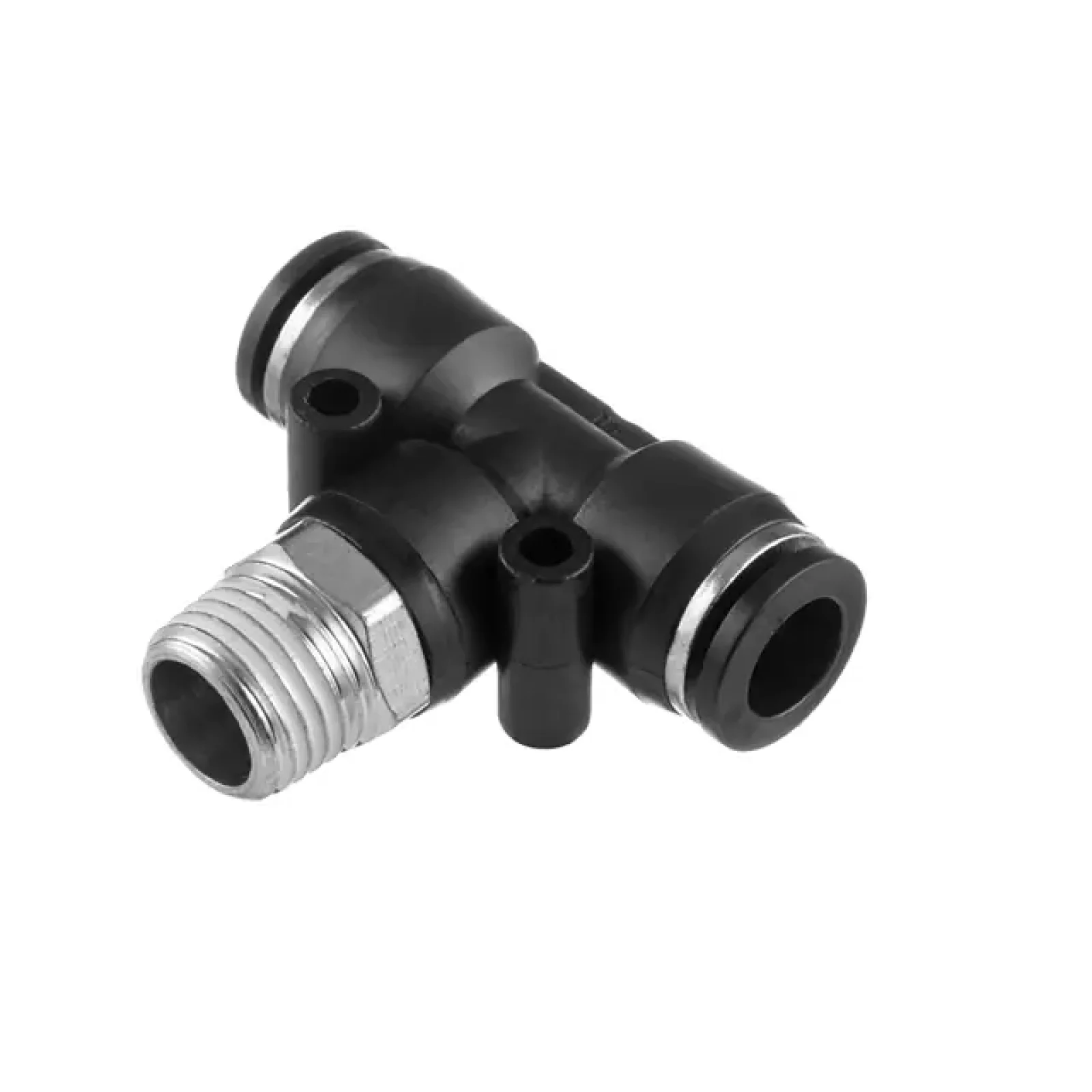 Цангове з'єднання T-подібної форми використовується для створення пневматичних магістралей і для монтажу пневмосистем. Забезпечує повністю герметичне з'єднання різних пневматичних шлангів без пошкодження їхньої поверхні (PU, PE, PA) - поліуретанових, поліетиленових, поліамідних тощо.