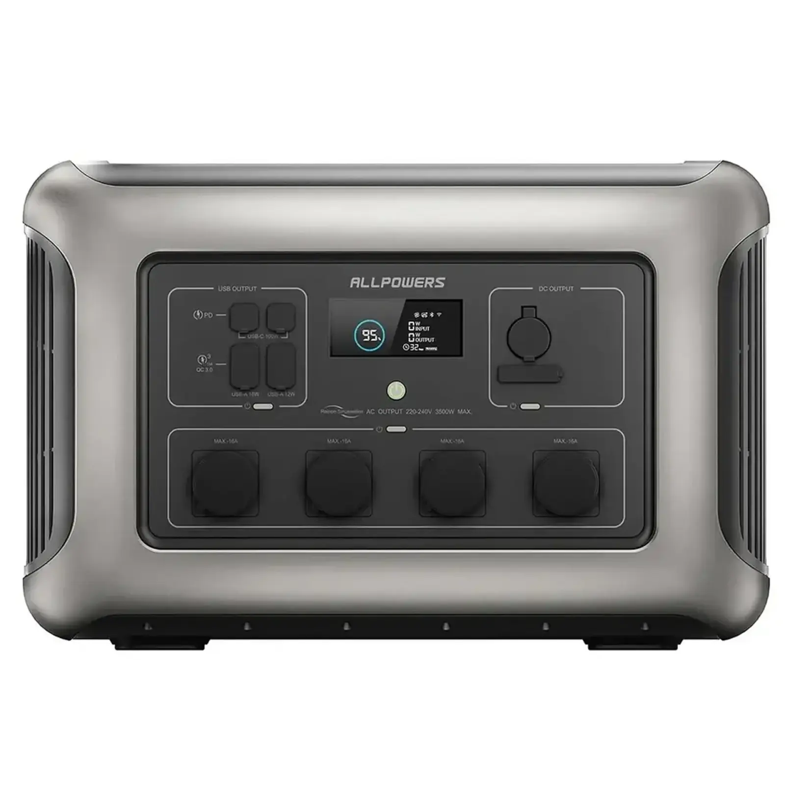 Allpowers R3500 – мощная зарядная станция на 3500 Вт (пик 6000 Вт) с емкостью 3168 Вт·ч для полного обеспечения дома, офиса или кемпинга. LiFePO4 аккумулятор выдерживает 3500+ циклов зарядки – работает 10 лет без замены. UPS-реакция 15 мс автоматически переключается на батарею при отключении света.