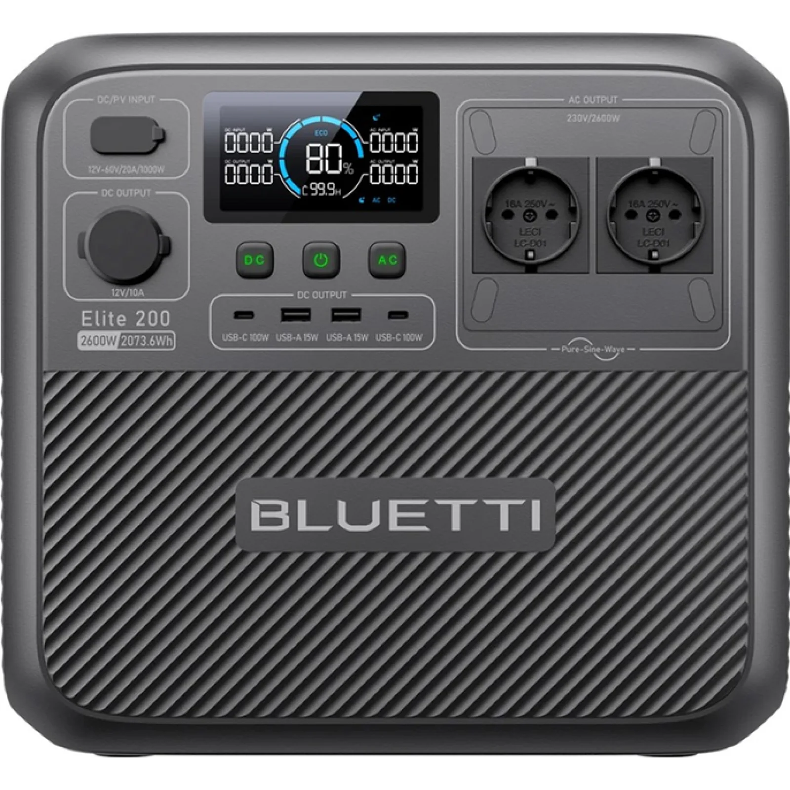 Bluetti Elite 200 V2 підтримує номінальну потужність 2600 Вт з піковою до 3900 Вт у режимі Power Lifting, що дозволяє безперебійно живити великі побутові прилади, професійне обладнання та електроніку.