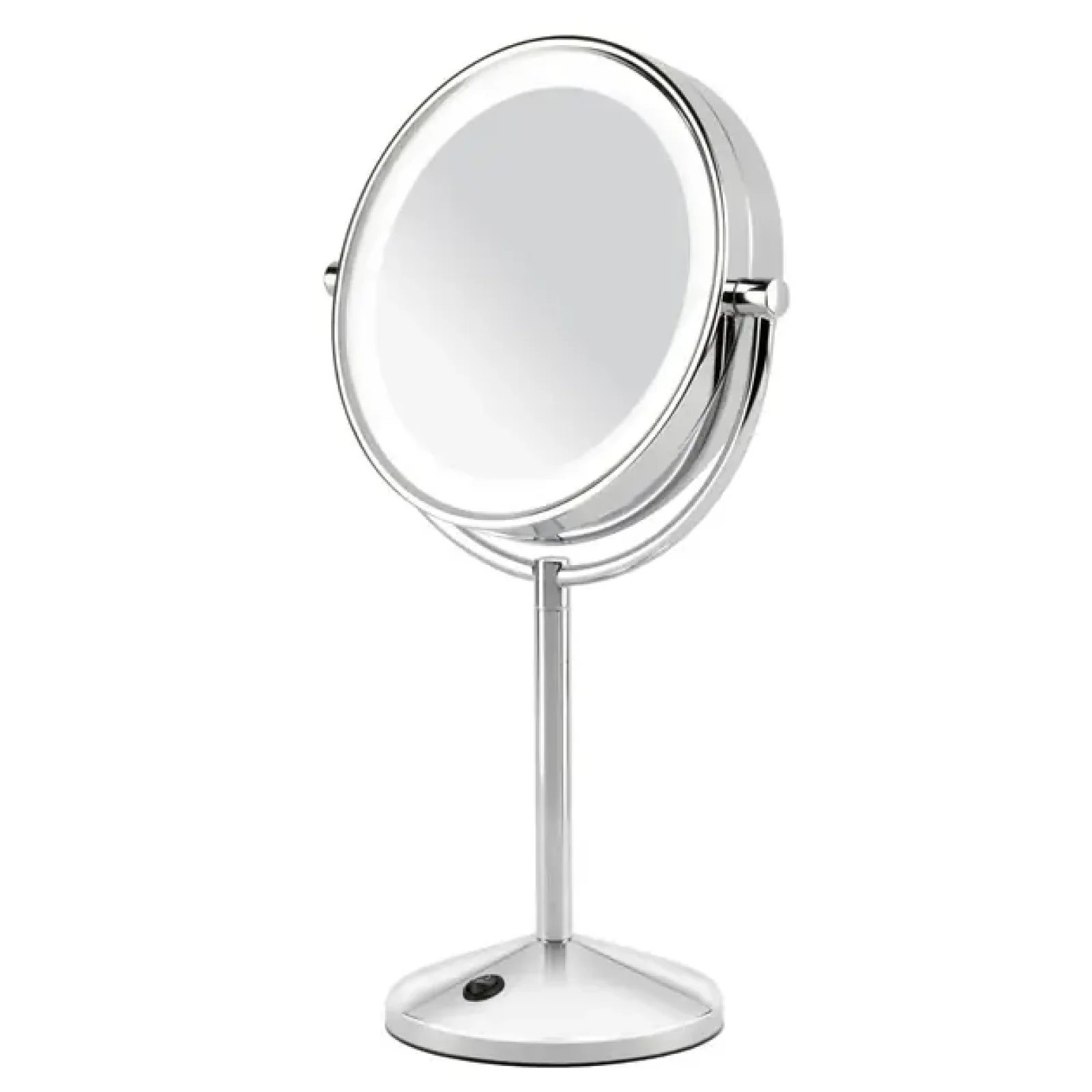 Завдяки двосторонньому дизайну, ви отримуєте як звичайне дзеркало, так і збільшення в десять разів, що дає змогу детально працювати над кожною деталлю вашого макіяжу. Елегантне хромоване покриття та обертова рамка додають зручності та стилю.