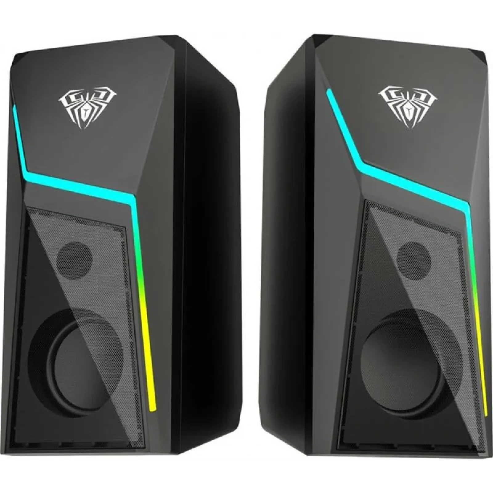 Колонки 2.0 AULA N-521 із потужністю 6 Вт відмінно підходять для ПК, моноблока чи ноутбука. RGB-підсвічування перетворює акустичну систему на стильний елемент декору для комп’ютерного столу. Зовнішній регулятор гучності дозволяє не тягнутися до колонок, що особливо зручно за віддаленого розташування.