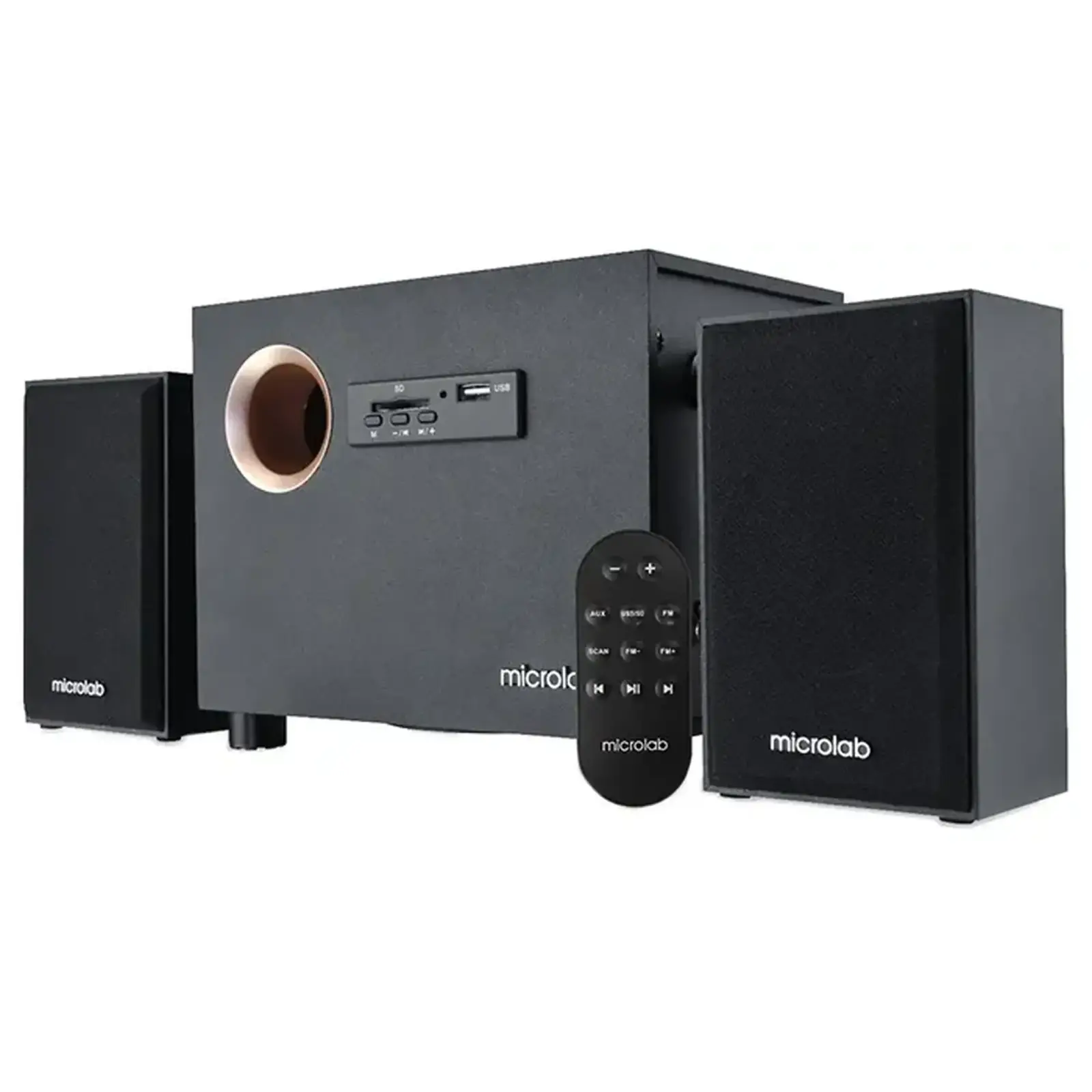 Сабвуфер сконструйований за допомогою технології bass reflex (фазонівертор). Для зручності розташування сабвуфер фазоінвертор виведений на передню панель. Підтримує безліч інтерфейсів для підключення різних носіїв інформації (USB- та SD), 3,5-мм роз'єми та 2RCA, слот для карток SD, а також налаштування для вбудованого FM-радіо. Колонки комплектуються бездротовим пультом дистанційного керування.
