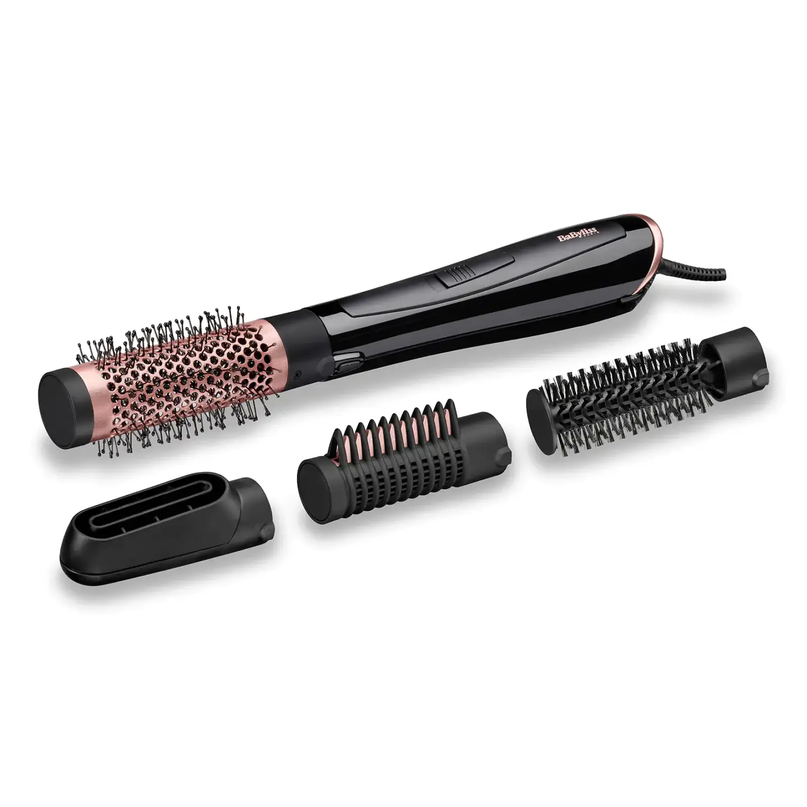 Babyliss AS126E комплектується змінними насадками, які дозволяють легко змінювати стиль. Круглі щітки різного діаметра підходять для створення об’єму, м’яких хвиль або підкручування кінчиків. Концентратор стане у пригоді для попереднього сушіння, а плоска щітка — для вирівнювання та щоденного доглянутого вигляду. Така універсальність робить прилад зручним для волосся різної довжини та структури.