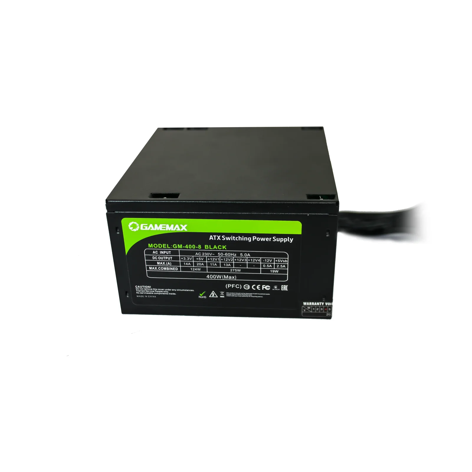 Сумарна потужність 400 Вт гарантує стабільну роботу всіх компонентів ПК. Лінії +12V1 і +12V2 підтримують живлення процесора та відеокарти, а +3,3V і +5V забезпечують стабільну напругу для материнської плати та периферійних пристроїв, що робить систему надійною навіть під навантаженням.