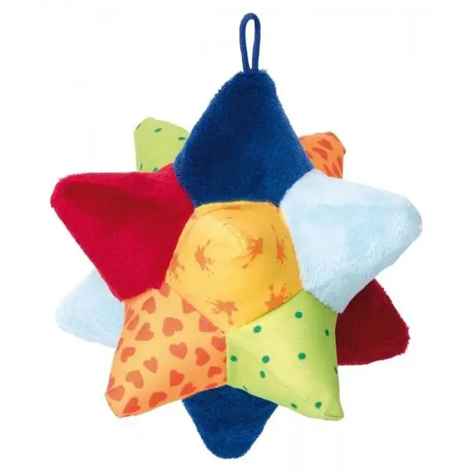 Барвисте брязкальце створене для немовлят з народження. Яскрава іграшка у вигляді зірки стимулює зір, увагу. Цікава «шипована» форма брязкальця і приємні матеріали виготовлення допоможуть дитині покращити тактильне сприйняття. Іграшка-брязкальце невеликого розміру (12,5х12,5х,12,5 см), дитині буде зручно тримати її в руках. Брязкальце німецького бренду сертифікованих іграшок sigikid. Безпечність матеріалів іграшки sigikid затверджена німецькими стандартами якості. Рекомендований вік: від народження.