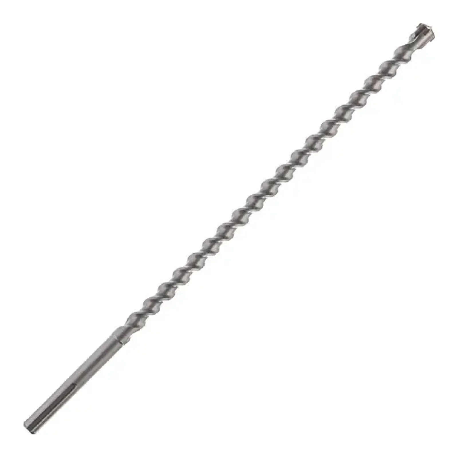 Твердосплавний наконечник з чотирма різальними гранями забезпечує легкий початок свердління та підвищену точність, що особливо важливо для центрування та запобігання ковзанню інструмента в початковій фазі свердління. Спіральна різальна частина ефективно виводить пил з робочого простору, мінімізуючи теплову дію, що важливо для довговічності бура та якості виконаних отворів.