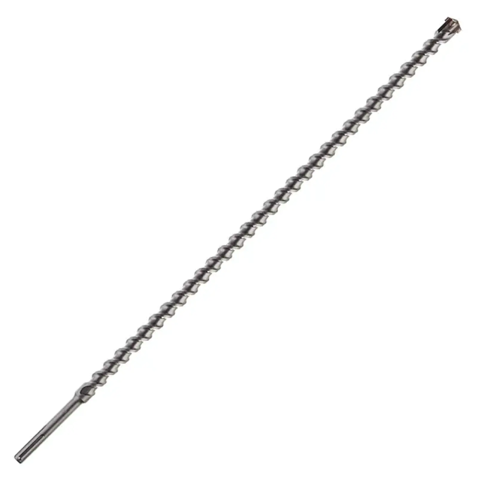 Твердосплавний наконечник з чотирма різальними гранями забезпечує легкий початок свердління та підвищену точність, що особливо важливо для центрування та запобігання ковзанню інструмента в початковій фазі свердління. Спіральна різальна частина ефективно виводить пил з робочого простору, мінімізуючи теплову дію, що важливо для довговічності бура та якості виконаних отворів.