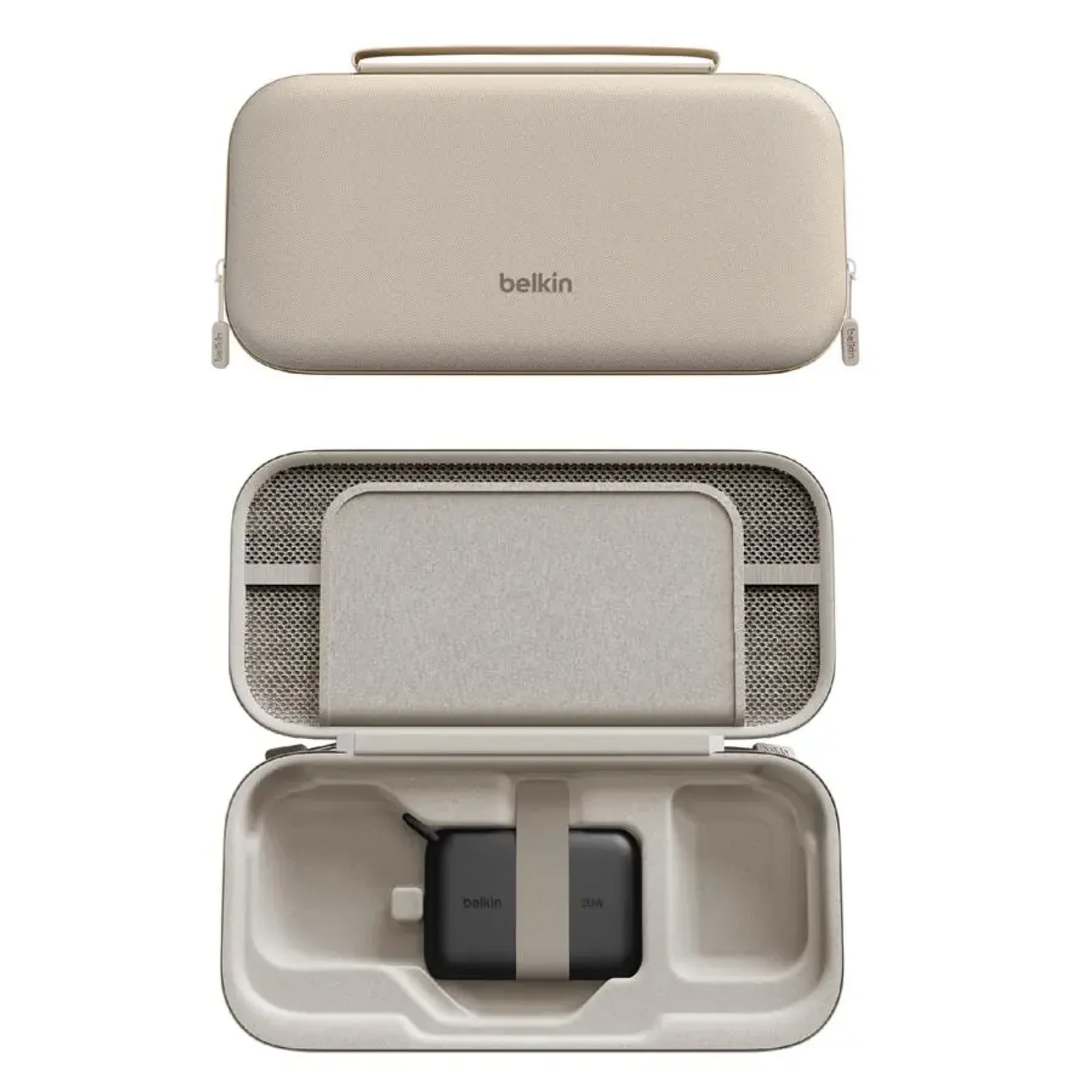 Мобільне живлення без компромісів. Усередині – потужний акумулятор 10 000 мА·год із дисплеєм, який дає змогу відновлювати заряд Nintendo Switch 2 до 1,5 раза швидше. Забезпечено живлення 20 Вт через розніми USB-C та USB-A. Завдяки технології Belkin SmartProtect заряджання безпечне та стабільне, навіть коли гра триває. Спеціальна канавка для підставки дає змогу встановити консоль безпосередньо в кейсі, щоби грати й одночасно заряджати.