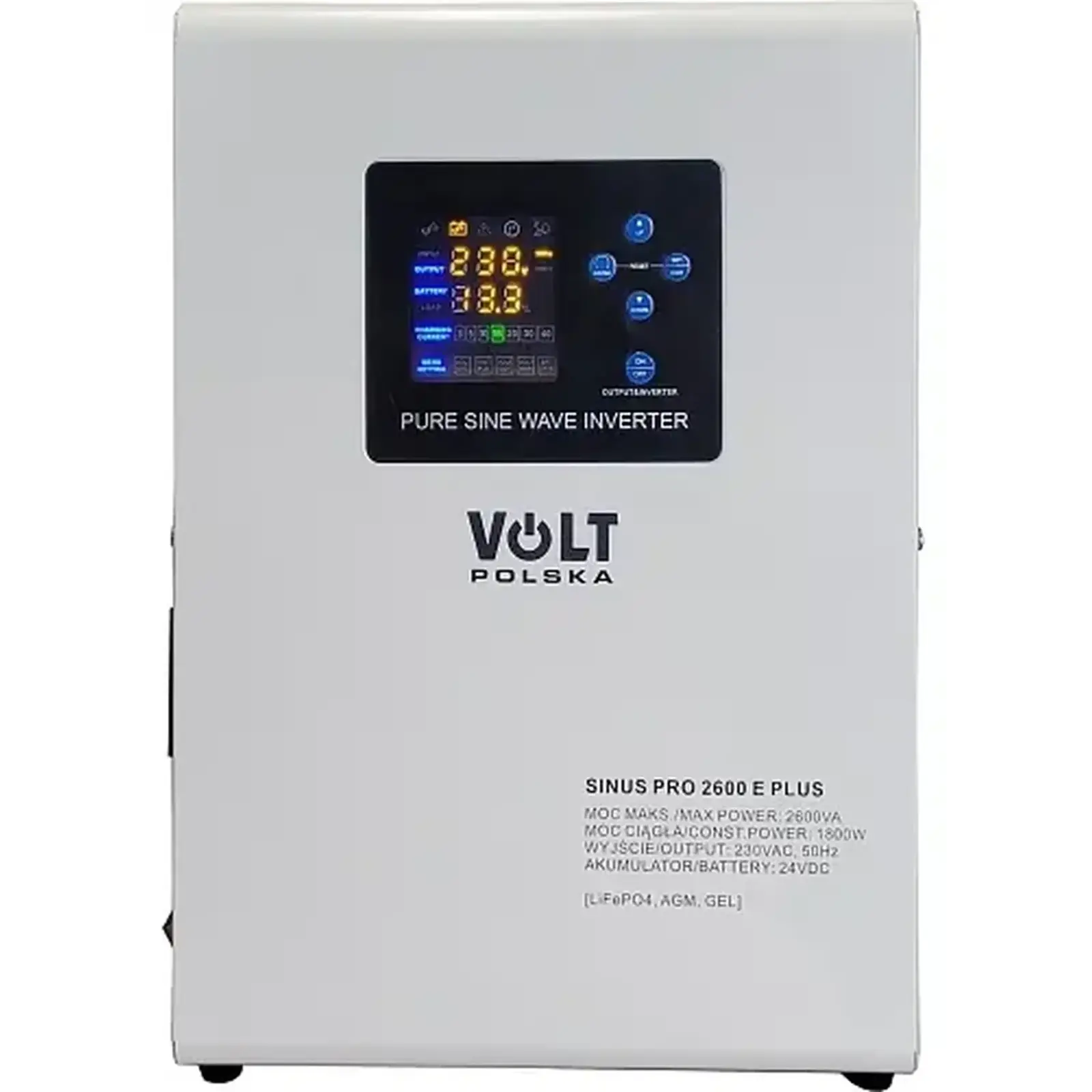 Volt Polska SINUS PRO 2600 E PLUS - надійний і високопродуктивний гібридний UPS-інвертор, призначений для безперервного живлення різноманітних побутових та промислових приладів при зникненні мережевої напруги. Завдяки виходу з чистою синусоїдою, пристрій здатний стабільно працювати з чутливою електронікою, насосами, котлами, електроплитами, комп’ютерами та іншим обладнанням з індуктивним навантаженням. Він забезпечує плавний перехід в режим роботи від акумулятора, мінімізуючи ризики втрати даних чи пошкодження пристроїв.