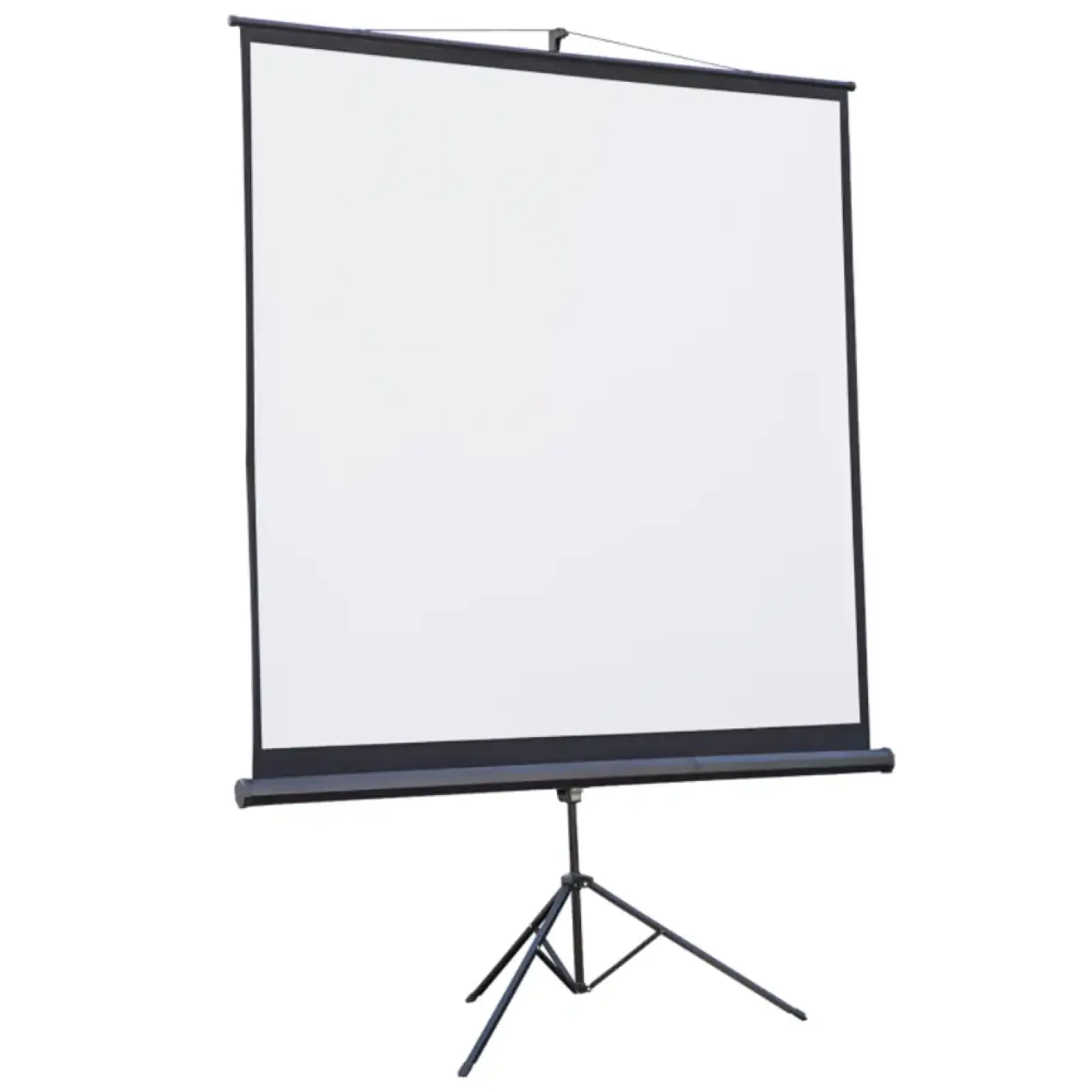Міцна тринога з автоматичною або зручною механічною регулюванням висоти дозволяє швидко підняти екран на потрібний рівень і надійно зафіксувати його для стабільного відтворення картинки. Екран легко збирається, складається і транспортується (вага близько 10 кг), тому його зручно використовувати у різних залах, навчальних закладах, на офісних презентаціях та відкритих просторах.