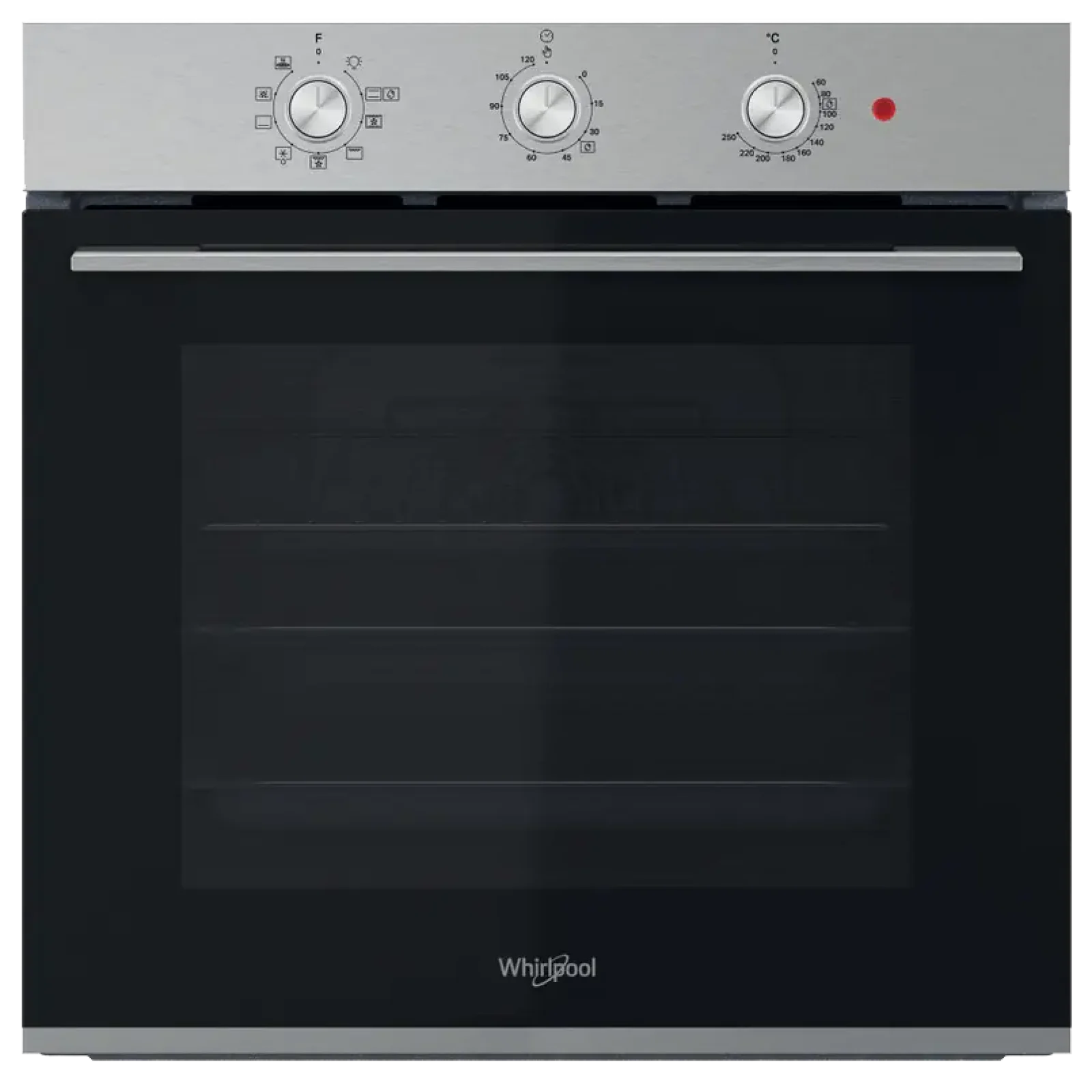 Whirlpool OMK38HU0X виконана у стильному поєднанні нержавіючої сталі та чорного скла, що робить її універсальним рішенням для сучасного інтер'єру. Спеціальне покриття захищає металеві поверхні від відбитків пальців, зберігаючи естетичний вигляд приладу. Система охолодження корпусу та багатошарове засклення дверцят гарантують, що зовнішня панель залишиться безпечною для дотику навіть під час інтенсивної роботи духової шафи.