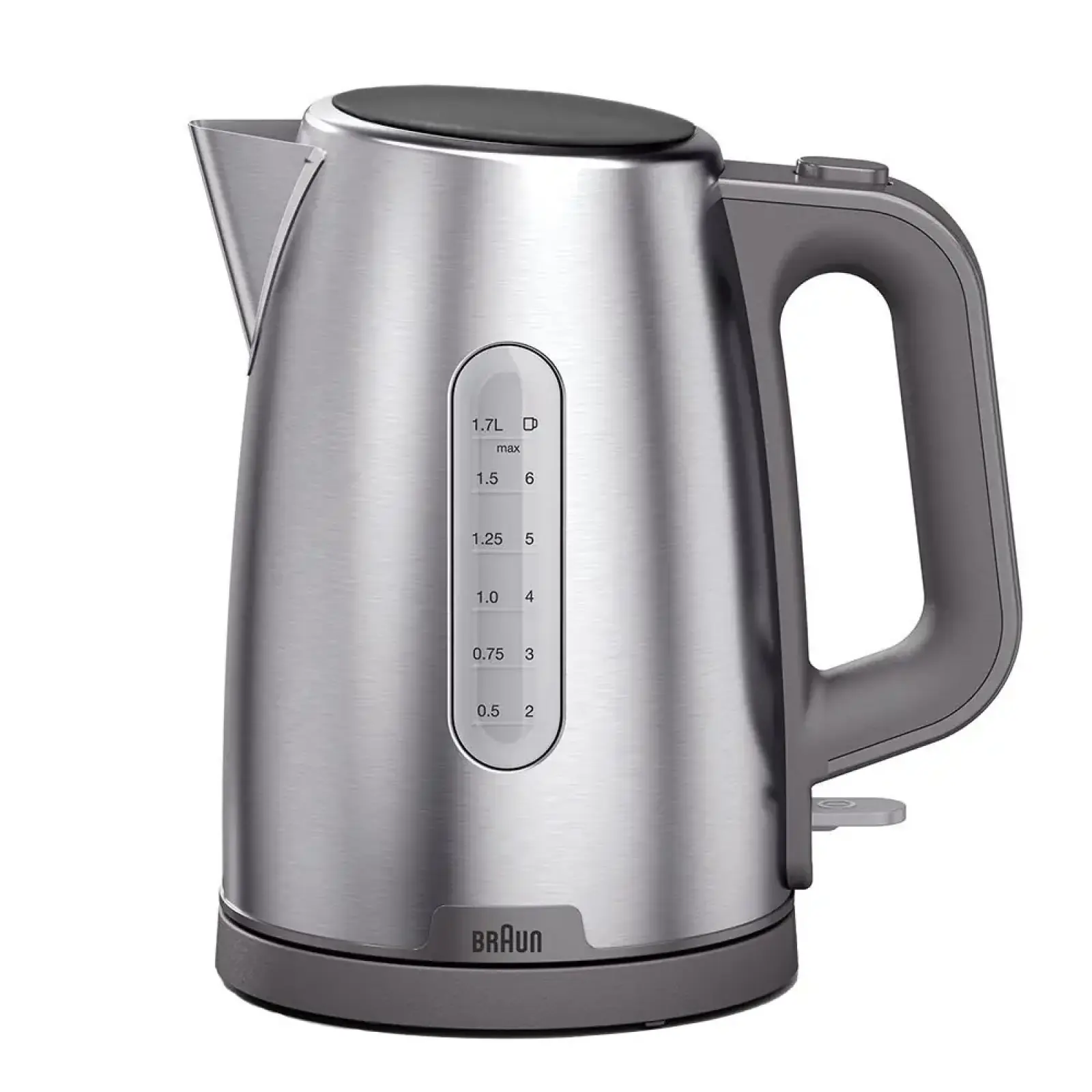 Кругла підставка з поворотом на 360 градусів дозволяє легко ставити чайник з будь-якого боку, що зручно як для правшів, так і для шульг. Чіткий двосторонній індикатор рівня води допомагає точно контролювати об'єм рідини. Braun WK 1500 GY — це поєднання довговічності, безпеки та витонченого дизайну для вашого комфорту.