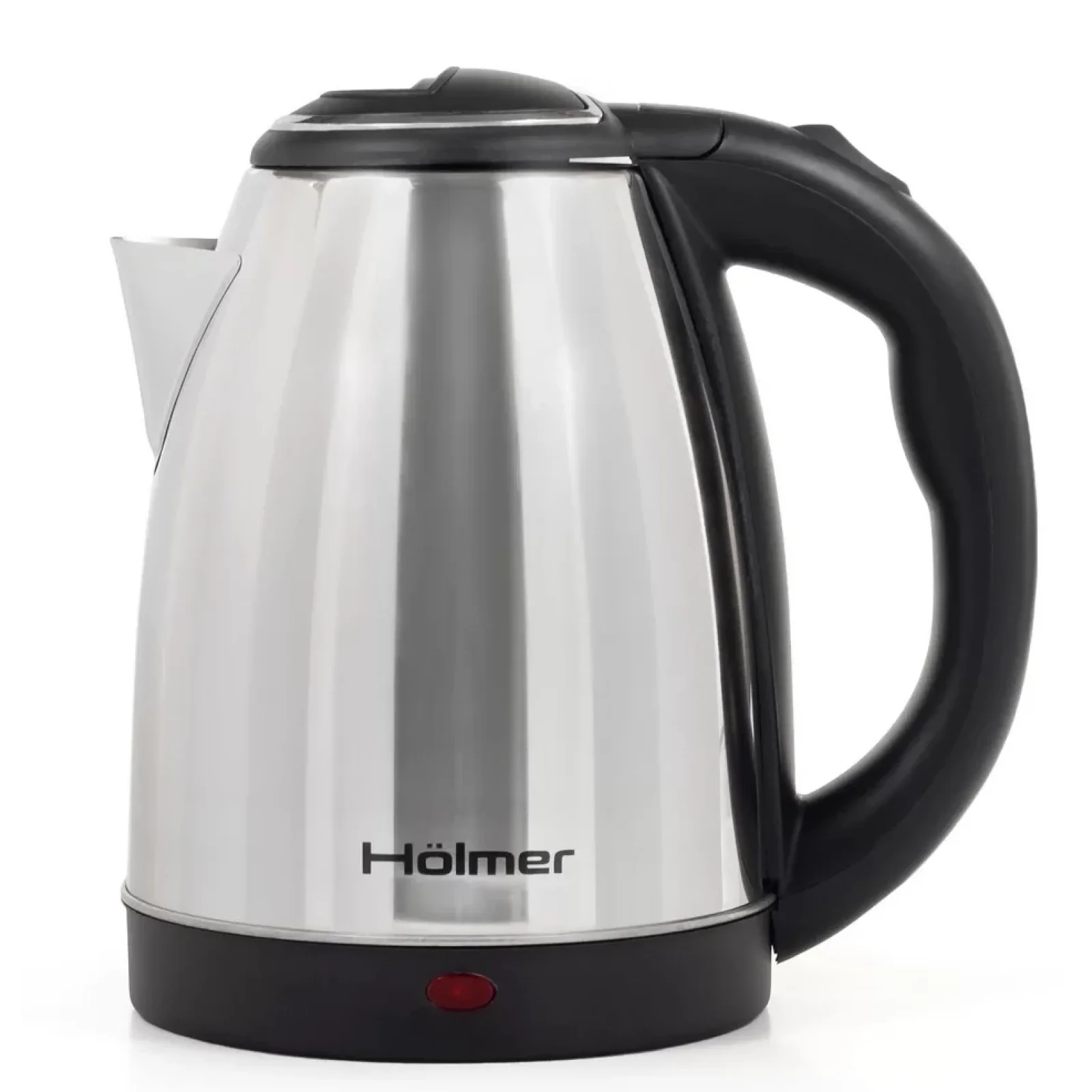 Металевий електрочайник Holmer HKG-1510 об’ємом 1.8 л та потужністю 1800 Вт. Має систему автоматичного відключення під час закипання. Підставка-основа чайника повертається на 360 градусів.