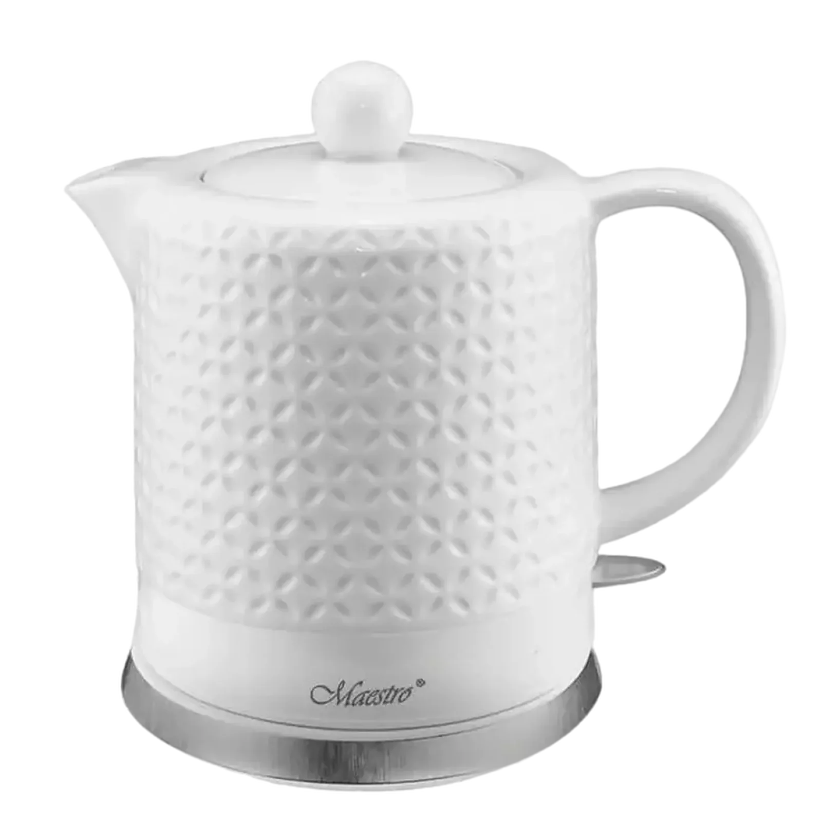 Електрочайник Maestro MR-067 - стильний керамічний прилад потужністю 1200 Вт з об'ємом 1,2 л, що ідеально підходить для щоденного використання на кухні. Корпус з високоякісної екологічно чистої кераміки білого кольору поєднує сучасний дизайн, довговічність і стійкість до подряпин, легко вписуючись в інтер'єр.