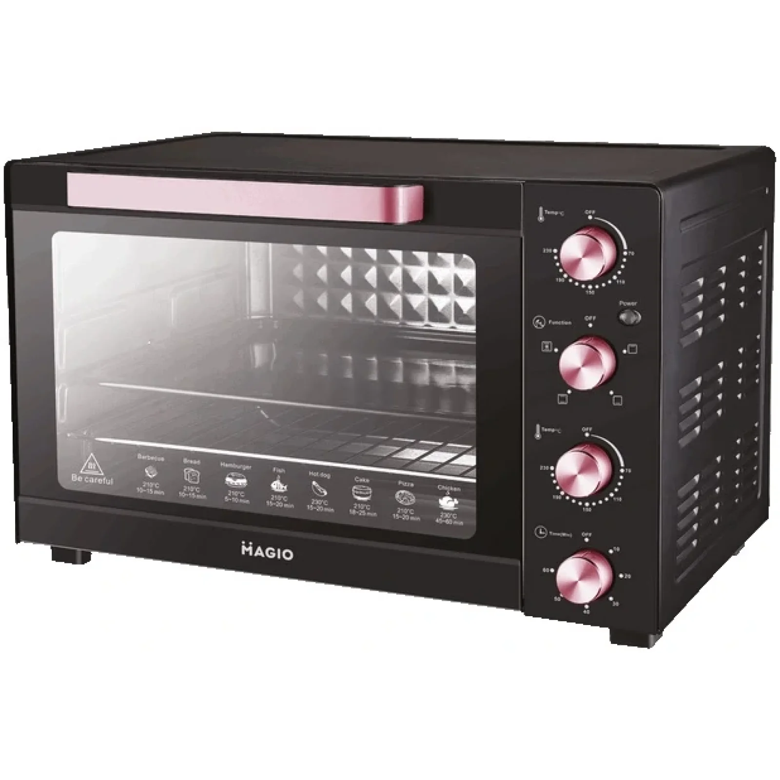 Компактна електропіч MG-250 потужністю 1900 Вт забезпечує оптимальний результат приготування. Внутрішній об’єм складає 45 літри, чого цілком вистачить, якщо ви плануєте готувати страви для своєї родини. 6 автоматичних режимів дозволяють готувати безліч найрізноманітніших страв. Прилад оснащений регулятором температури 70-230°С і таймером на 60 хвилин. Режим конвекції рівномірно розподіляє тепло всередині приладу, піч працює як конвекційна духовка. У комплекті є все необхідне для готування: піддон, знімна решітка, знімна ручка.