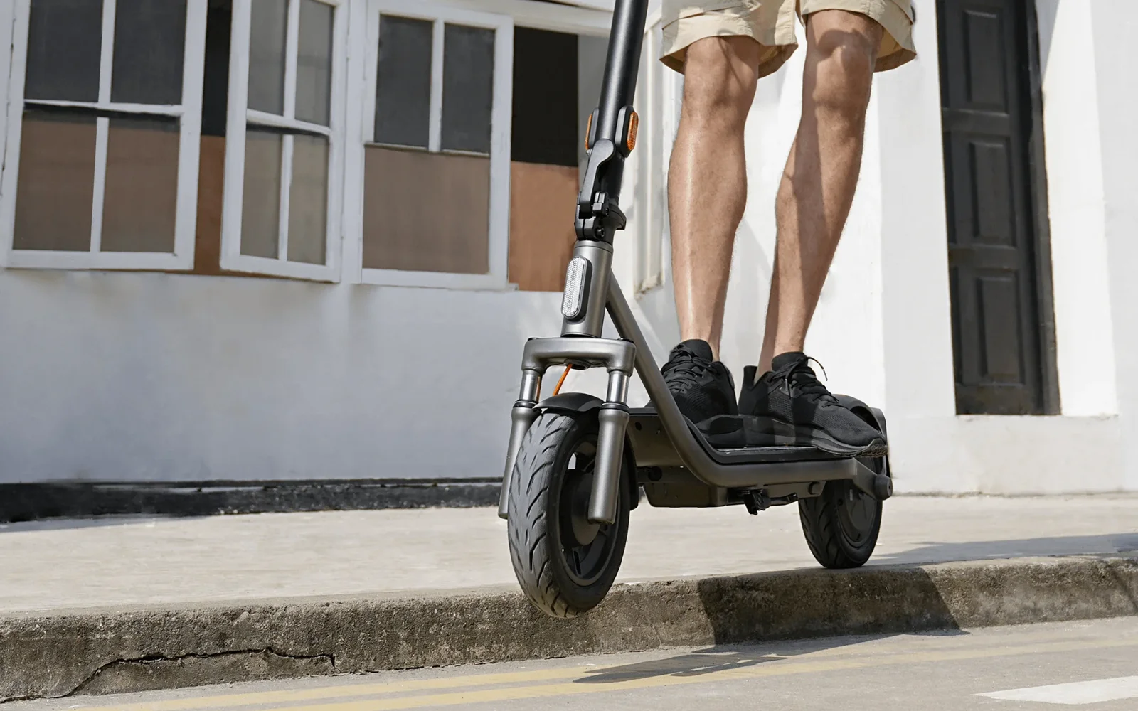 Великі 10-дюймові пневматичні шини підвищують стабільність і роблять їзду більш зібраною на різному міському покритті. Вони краще справляються з лежачими поліцейськими, гравієм, дрібними перешкодами та нерівностями, допомагаючи самокату зберігати передбачувану поведінку на дорозі. Для міського електросамоката такого класу це важлива перевага, адже саме колеса формують відчуття впевненості, плавності й контролю в щоденних поїздках.