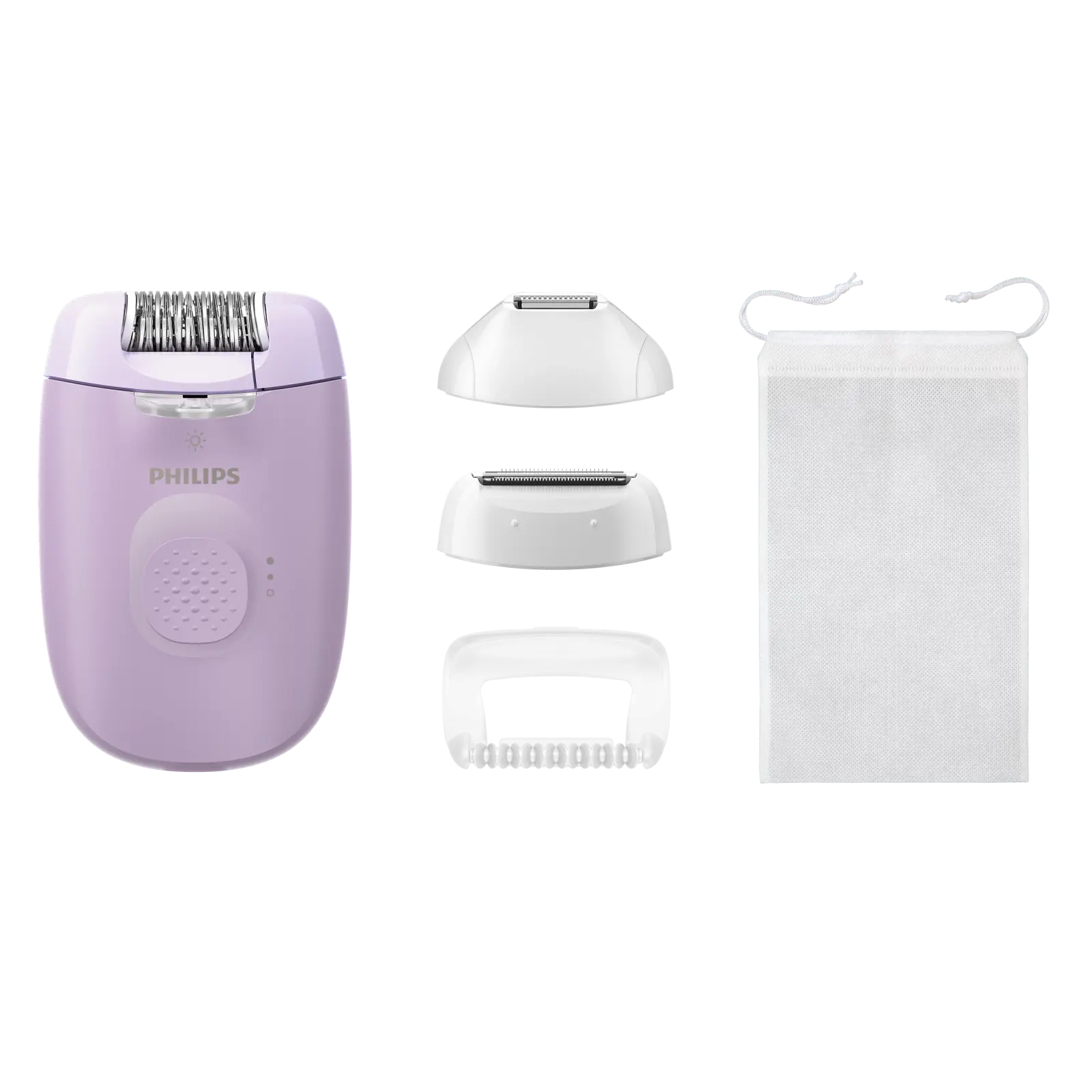 Епілятор Philips BRE257/00 комплектується бритвеною насадкою, тримером і насадкою‑гребінцем, що дозволяє підрізати довші волоски перед епіляцією або доглядати за чутливими зонами. Масажна насадка робить процедуру лагіднішою, а зручний чохол дозволяє брати епілятор із собою в дорогу. Такий набір робить модель універсальною та зручною для різних етапів догляду за тілом — від підготовки до фінішної корекції.