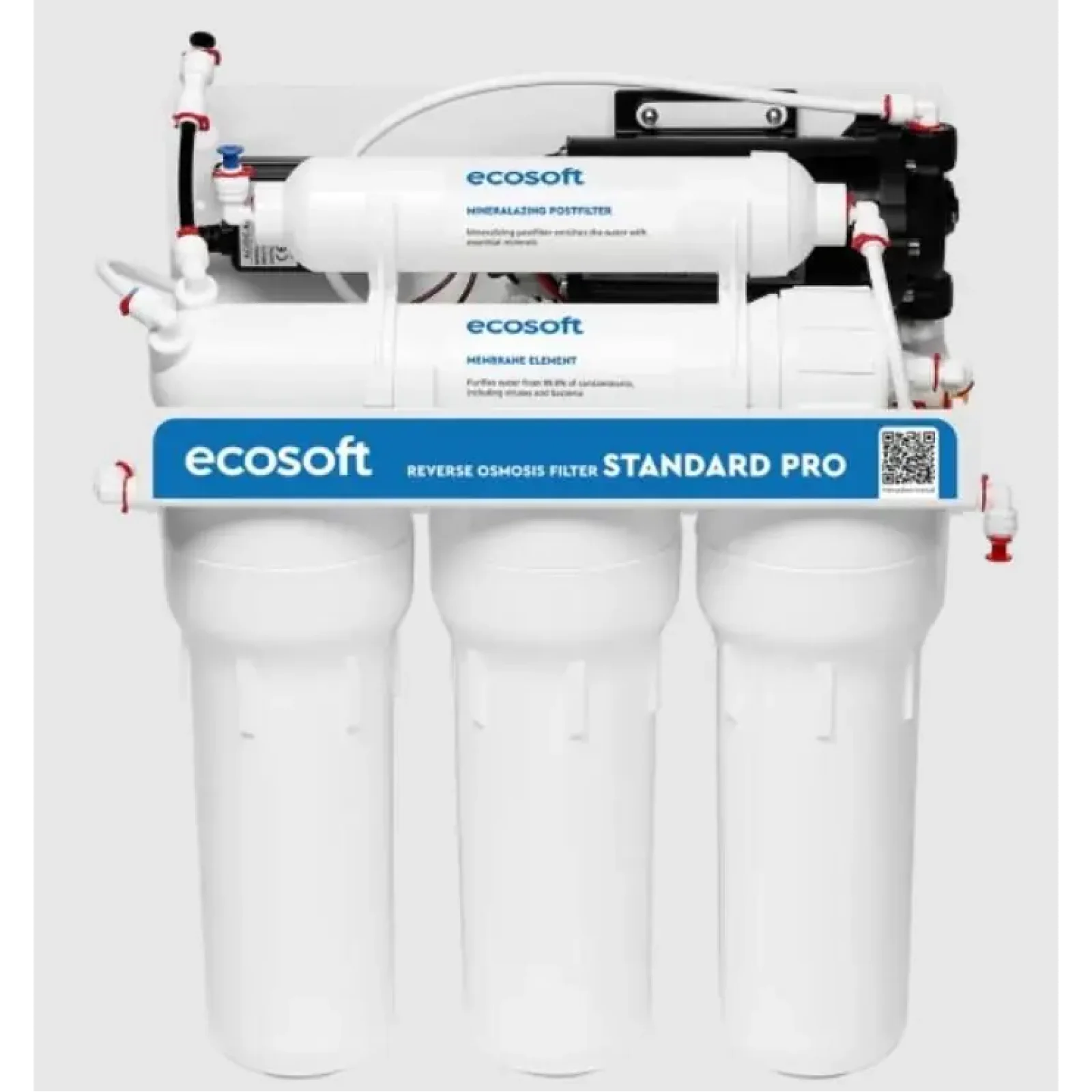 Фільтр зворотного осмосу Ecosoft Standard з помпою створений спеціально для квартир та будинків з низьким напором води в трубопроводі. Фільтр має продуктивність — 8 л/год. Підходить для сім'ї з трьох осіб. Фільтр робить воду безпечною для пиття та приготування їжі.