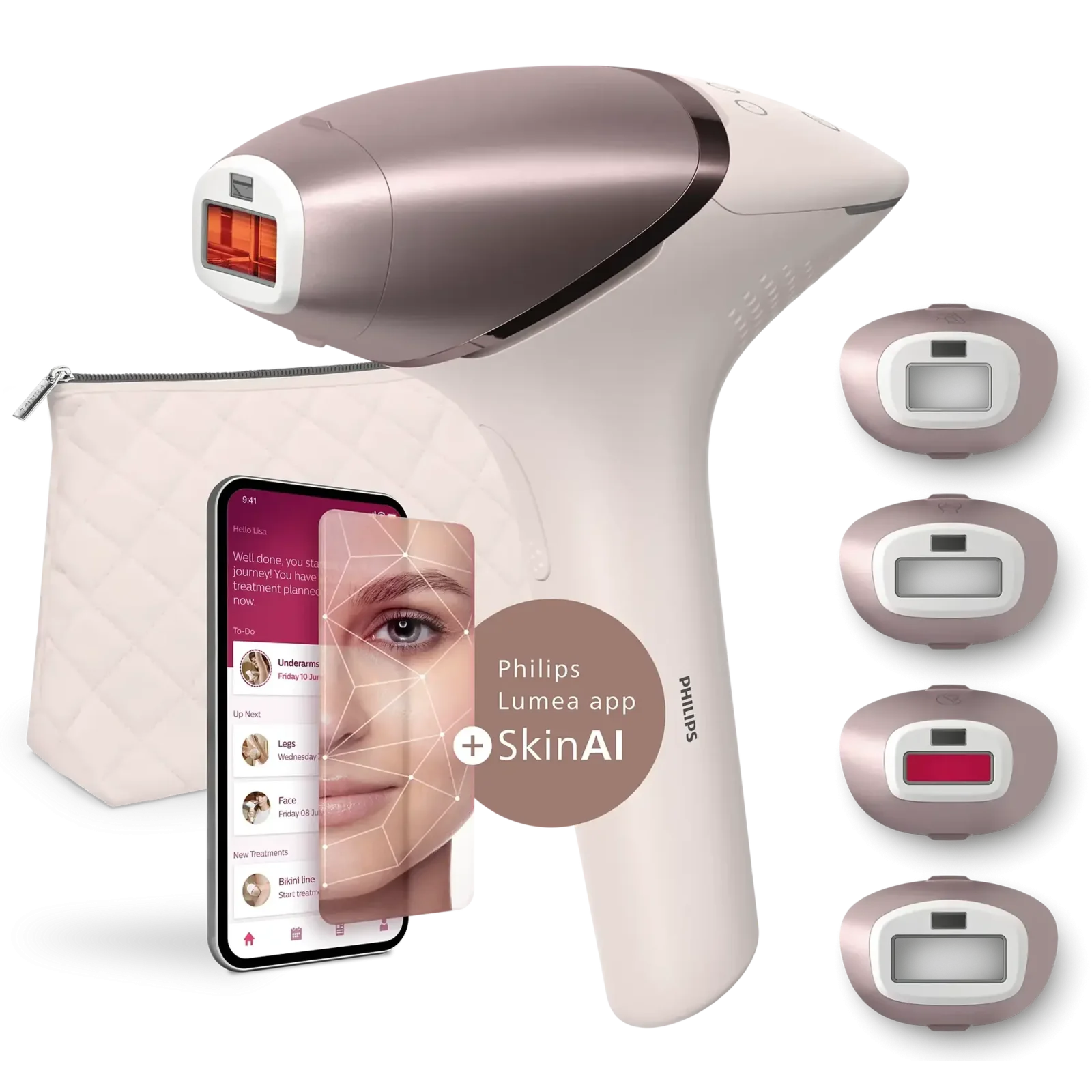 Наш розумний пристрій IPL з особливими функціями SkinAI. Ідеально гладка шкіра до 12 місяців.