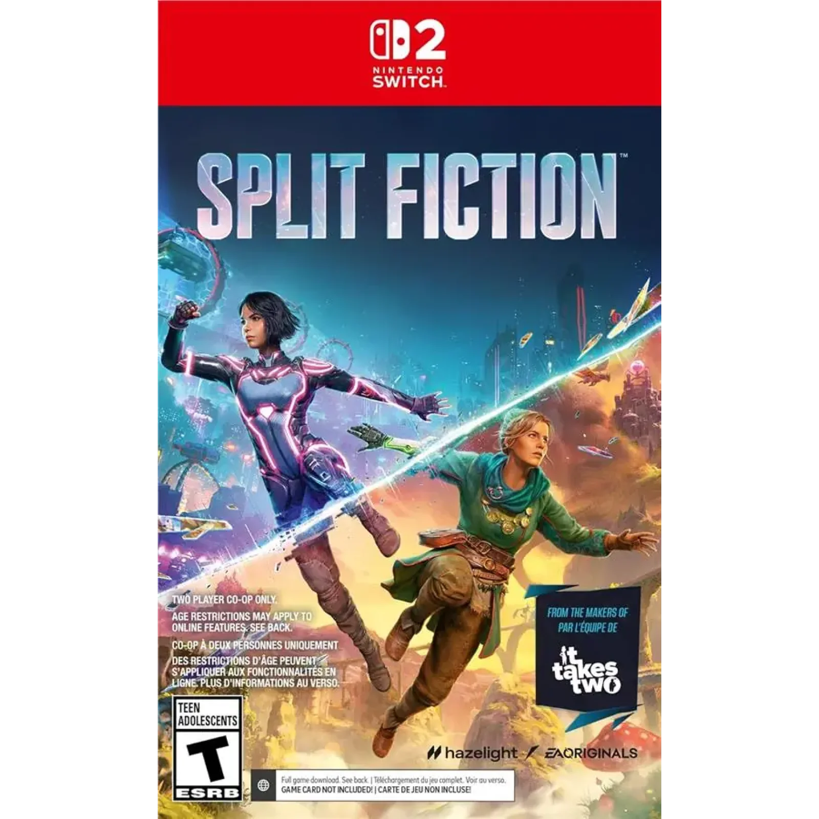 Переживіть приголомшливі моменти, занурюючись у численні світи Split Fiction — кооперативної пригодницької гри, що розширює межі можливого, від студії, яка створила It Takes Two, переможця у номінації «Гра року» в 2021 році. Міо та Зої — абсолютно не схожі письменники: один пише наукову фантастику, а друга — фентезі. Після того, як їх підключають до машини, призначеної для крадіжки їхніх творчих ідей, вони потрапляють у пастку власних історій. Їм доведеться покладатися одне на одного, щоби вирватися на волю зі збереженими в цілості спогадами, і працювати разом, щоб оволодіти різноманітними здібностями та подолати численні виклики, стрибаючи між науково-фантастичними й фентезійними світами в цій несподіваній історії про дружбу.