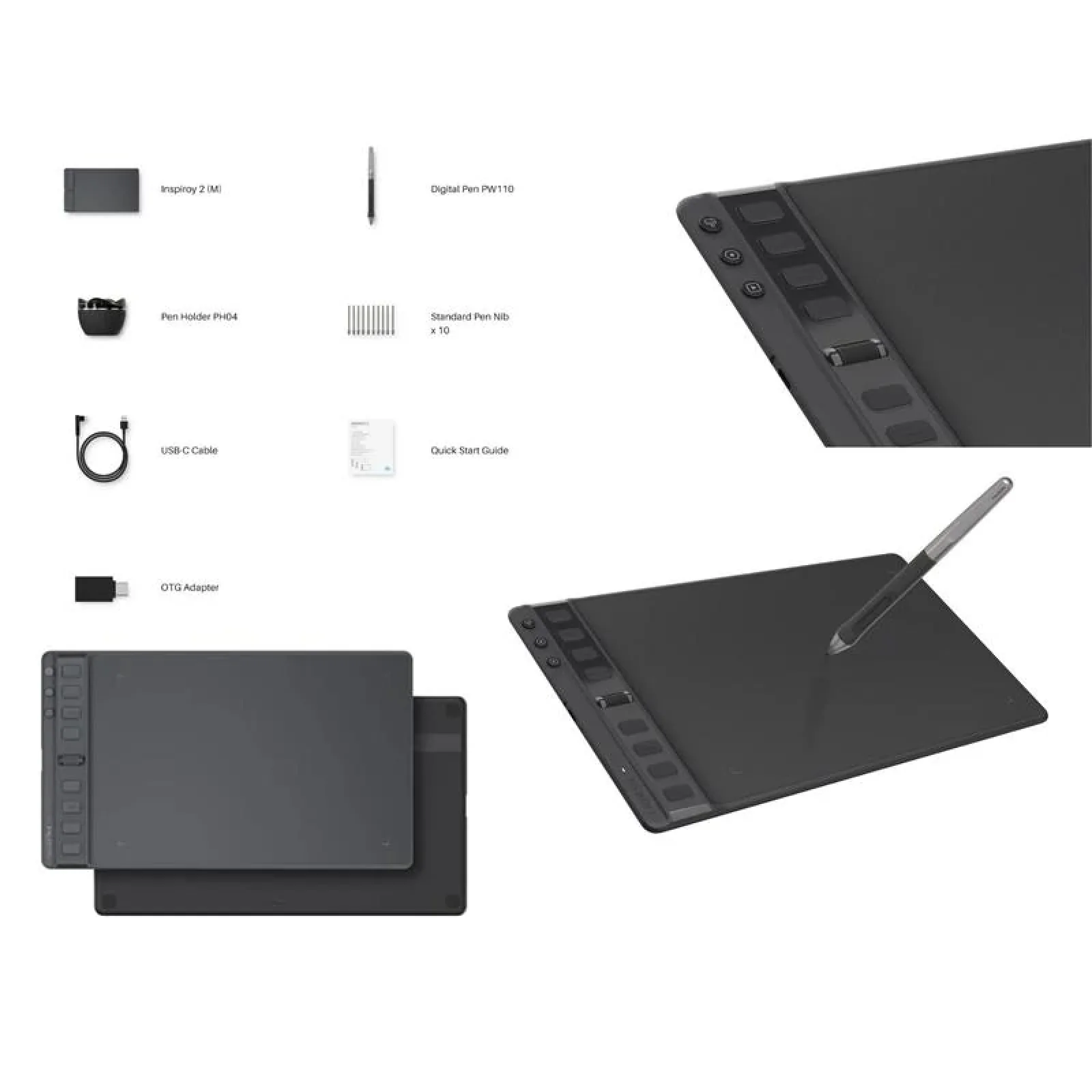 | Комплектация | Inspiroy 2 M, перо/стилус , USB-C Cable, USB-C Adapter, подставка для пера PH04, наконечни Nib x 10, инструкция |
