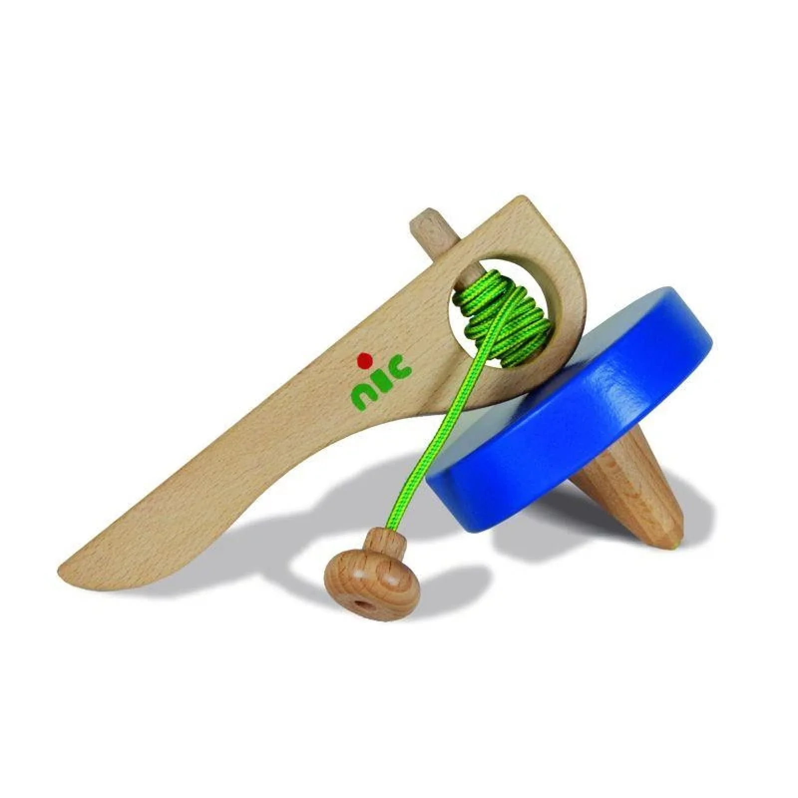 Пізнавати світ граючи разом із дерев’яною дзиґою німецького виробника іграшок nic весело та просто. Розвиваюча іграшка постачається без упаковки. Вона вироблена із натурального дерева. Об’ємний диск (O 85 мм) вкритий блакитною фарбою на водній основі. На ручці розміщений кольоровий логотип німецького бренду. Шнурок, яким розкручується дзиґа, вироблений із текстилю блакитного кольору. Щоб запустити дзиґу, необхідно протягнути стрижень іграшки через маленькі отвори великої ручки. Потім взяти блакитний шнурок, трохи протягти його через найменший отвір стрижня. Після чого, взятись за блакитний диск та накрутити мотузку. Ставимо іграшку на рівну поверхню і тягнемо за шнурок, водночас знімаючи велику ручку. Інтерактивна іграшка призначена для дітей від 4-х років.
