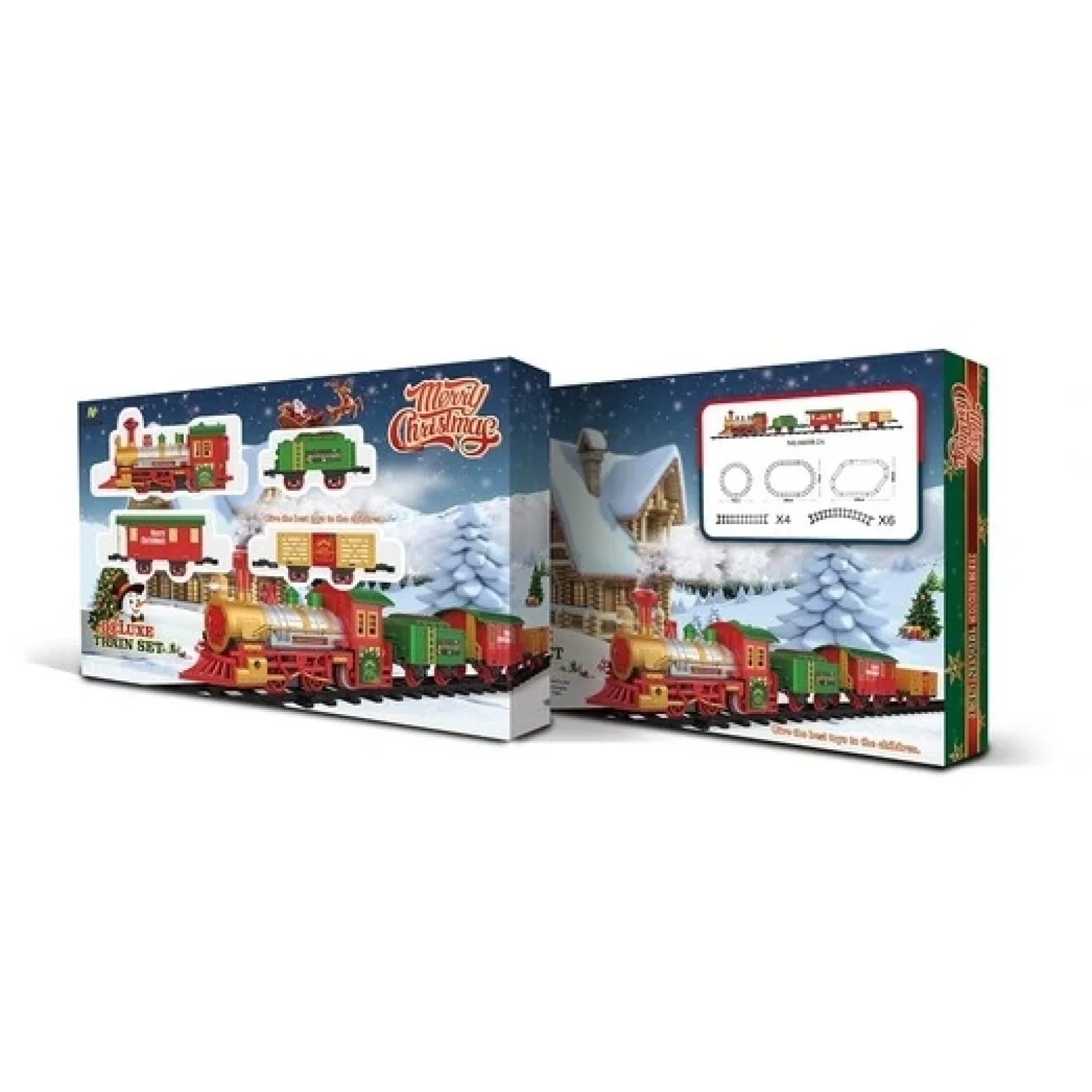 Набір дитячої залізниці містить 1 локомотив, 3 вагони, 6 кривих і 3 прямі рейки. Рейки можна викласти різною конфігурацією. Паровоз має світло та звук. Рекомендований вік: від 3 років. Матеріал: пластик. Живлення: 2 х АА (до комплекту не входять). Упаковка: коробка 49.5*32.5*6см.