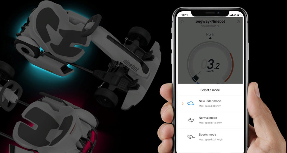 Наприклад, для дитини підійде режим для новачків з обмеженням швидкості до 8 км/год. У стандартному режимі швидкісна межа — 18 км/год, в гоночному спортивному — 24 км/год.