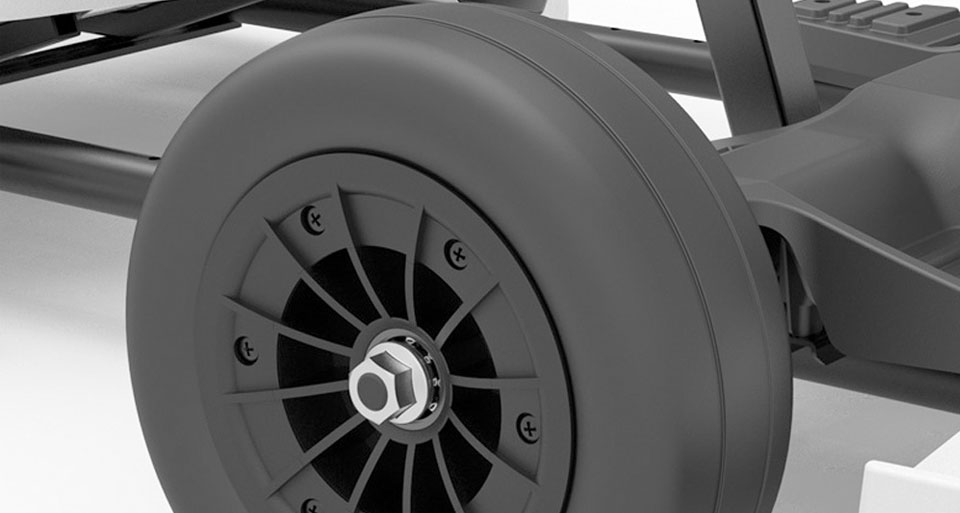 Крім того, за рахунок наявності гіроскопічної системи на задній парі коліс більшого діаметра гоночний компактний карт має відмінне зчеплення з поверхнею, стійкість до заносів під час поворотів на високій швидкості.