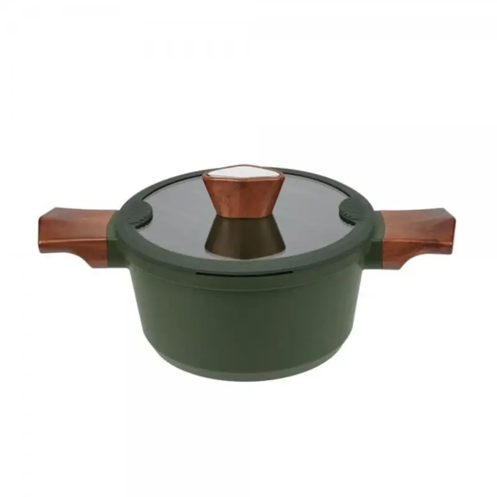 Для захисту від конденсату та запобігання розбризкуванню під час приготування їжі кришка з термостійкого скла оснащена стилізованою під дерево ручкою, силіконовим ободом та обладнана спеціальним отвором, що дозволяє легко випускати надмірну пару.
