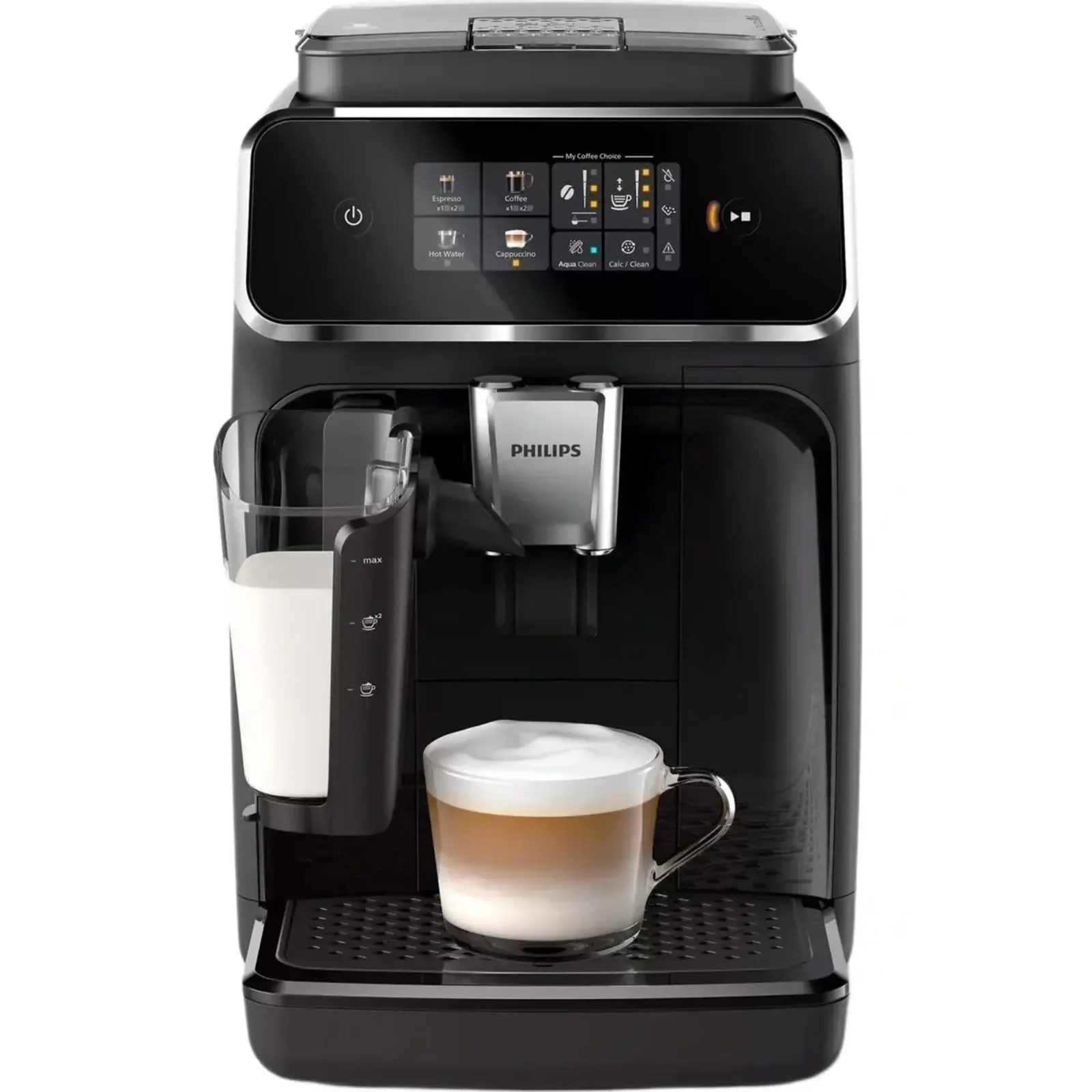 Кавомашина має інтуїтивний сенсорний дисплей з кольоровими піктограмами, що спрощує вибір напою та налаштування параметрів. Функція My Coffee Choice дає змогу персоналізувати інтенсивність смаку, об’єм порції та рівень піни відповідно до ваших уподобань.