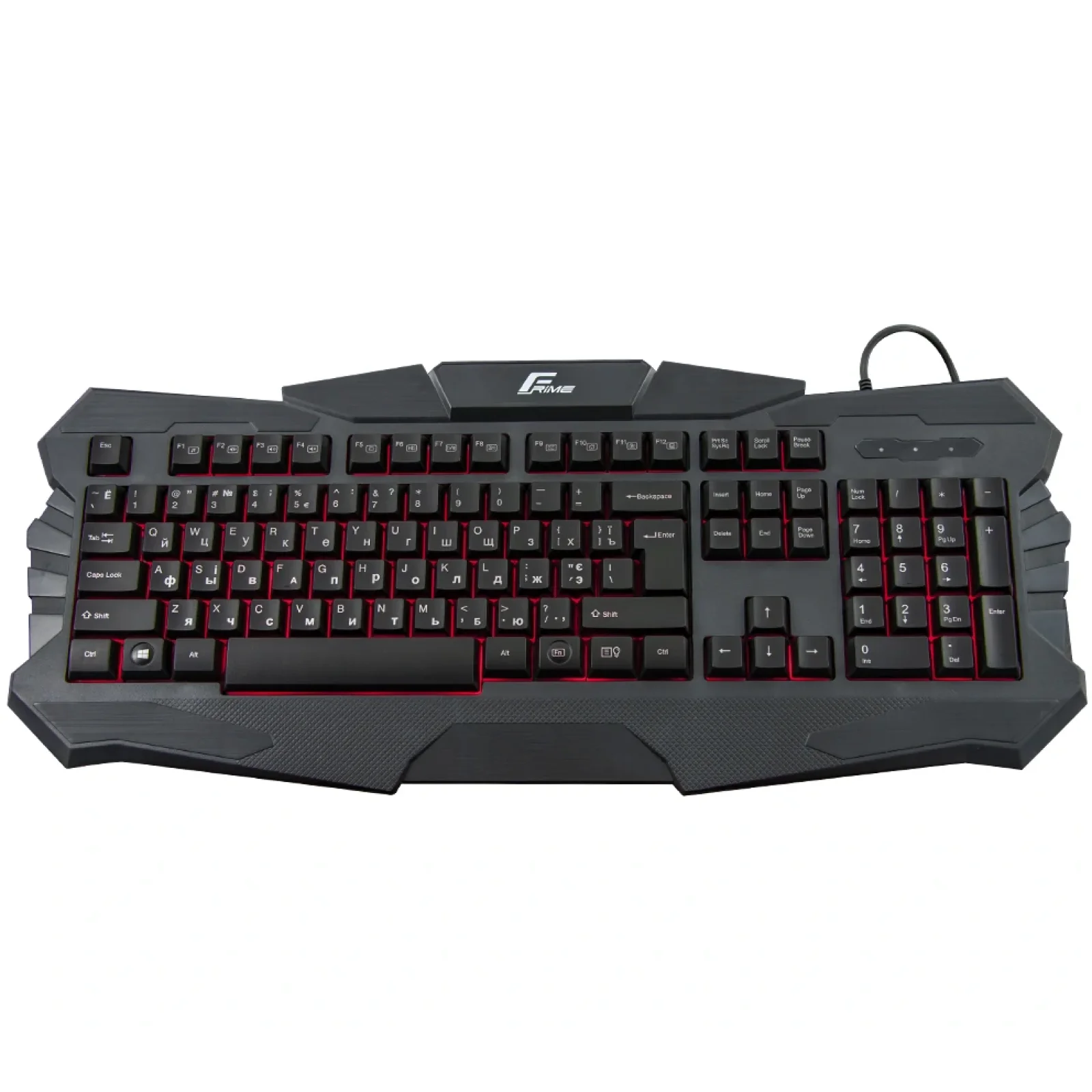 Клавиатура сочетает в себе практичность и привлекательный дизайн, в конструкции предусмотрено 104 кнопки на мембранных переключателях, которые обеспечивают эффективный, удобный ввод данных, длинный кабель 180 см и регулируемая RGB подсветка, что облегчит работу ночью. Модель поддерживает три языковые раскладки — английскую, русскую и украинскую. Подключение к компьютеру осуществляется через USB разъем.