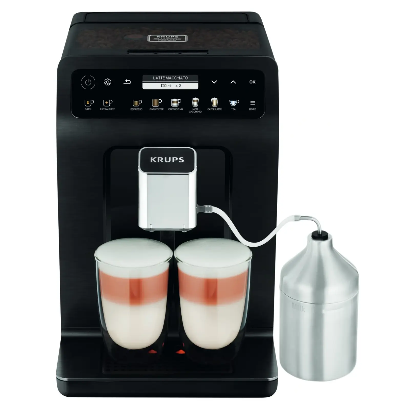 З Krups Evidence Plus ви стаєте майстром смаку. Налаштовуйте міцність, об'єм та пропорції молока прямо в процесі приготування. Функція Dark додасть вашій каві додаткової міцності та насиченості, а режим Extra Shot подарує потужний заряд бадьорості завдяки додатковій порції еспресо. Завдяки інтуїтивному інтерфейсу доступ до всіх налаштувань здійснюється миттєво.