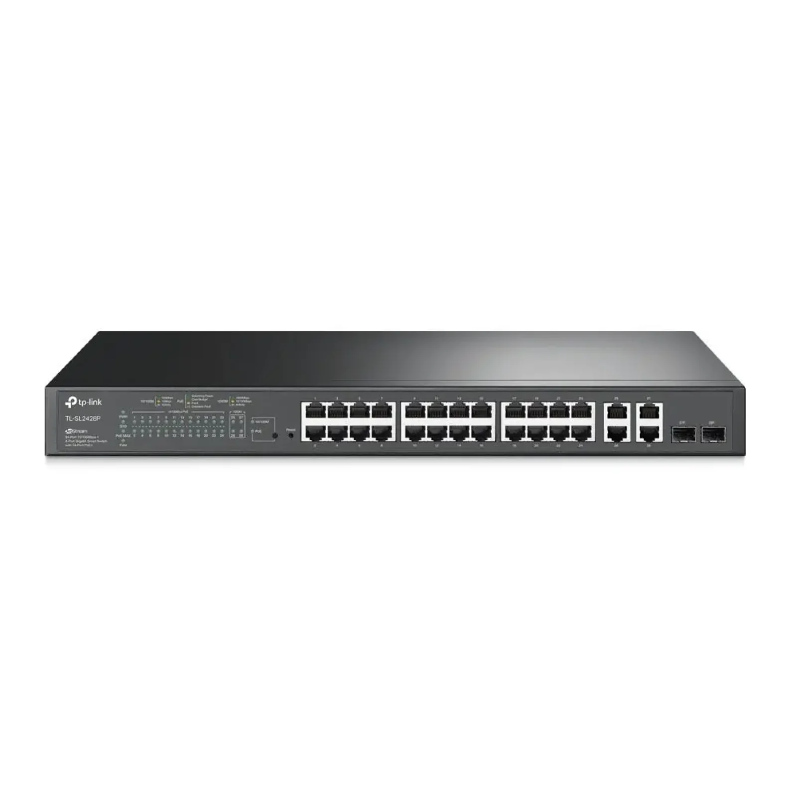 Стійка | 24x10 / 100М | 2xКомб. 10/100/1000M-T/SFP | IEEE 802.1p | IEEE 802.1Q | IEEE 802.3ab | IEEE 802.3ad | IEEE 802.3af | IEEE 802.3at | IEEE 802.3az | IEEE 802.3i | IEEE 802.3u | IEEE 802.3x | IEEE 802.3z | IEEE 802.11d | IEEE 802.1s | IEEE 802.1x | IEEE 802.1w | Порти PoE + 24 | PoE потужність 250 Вт | Пропускна спроможність комутатора 12.8 Gbps | Пропускна здатність в пакетах 9.52 Mpps | Розмір 440 x 180 x 44 mm | Вага без упаковки 2.8 кг