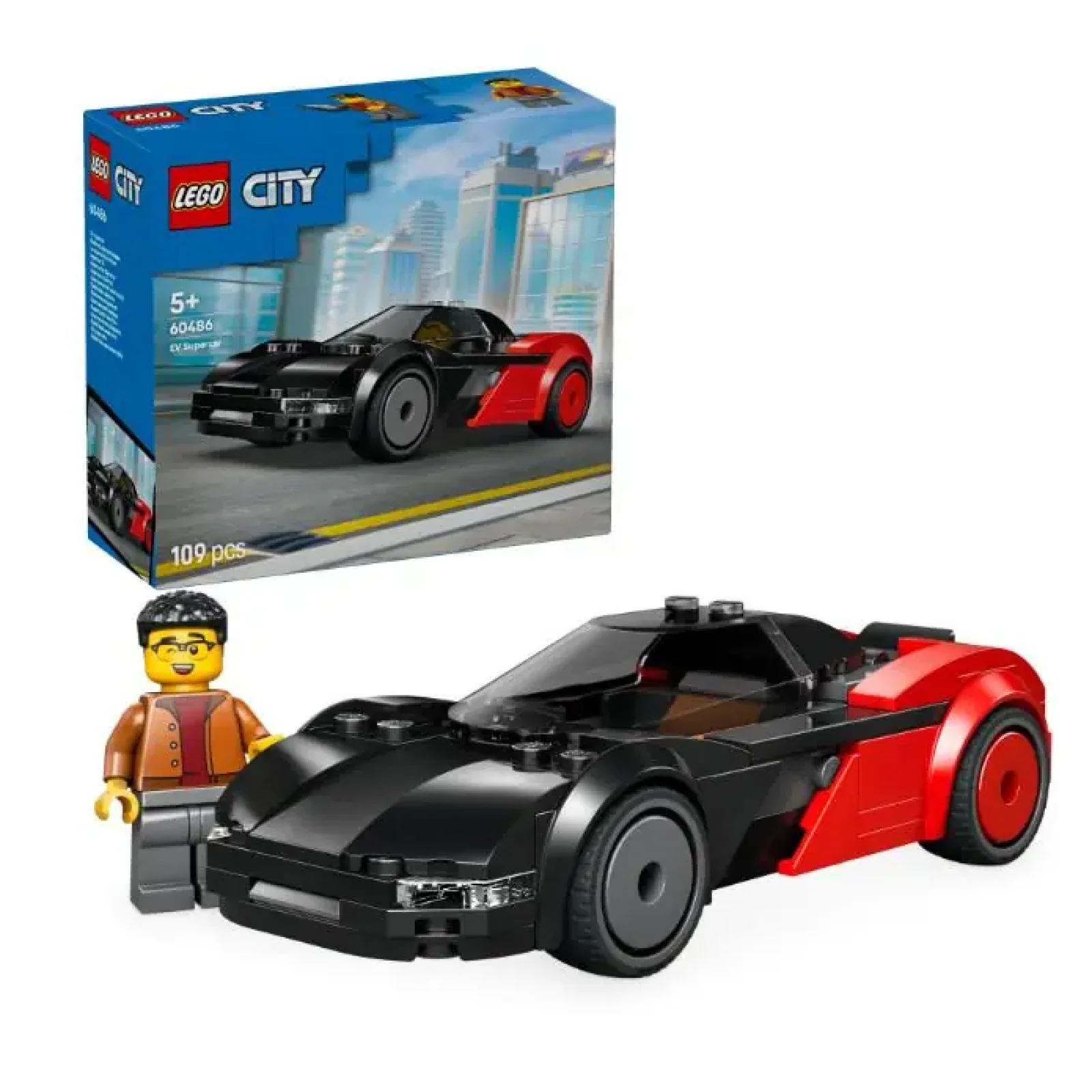 Потіште свого юного любителя електромобілів набором для конструювання LEGO® City Електричний суперкар (60486) для дітей від 5 років. Ця проста у будуванні іграшкова спортивна машина на електроприводі має безліч реалістичних деталей для гри та демонстрації, зокрема витончений аеродинамічний кузов у яскравій червоно-чорній колірній гамі, низькопрофільні гумові шини, задню світлову панель та тоновану кабіну пілота. Діти можуть відкрити задній люк, щоб дістати батарейний блок і посадити мініфігурку водія за кермо, щоб годинами грати в динамічні ігри та вигадувати цікаві історії. Цей невеликий набір іграшкових автомобілів стане чудовим подарунком на день народження або сюрпризом для хлопчиків, дівчаток та дітей, які люблять сучасні електромобілі та конструктори LEGO. Додайте цей набір до інших (продаються окремо) з серії LEGO City, щоб отримати ще більше можливостей для гри. Діти можуть впевнено скласти цей іграшковий електромобіль за допомогою додатка LEGO Builder, де вони можуть збільшувати, обертати в 3D і відстежувати прогрес за допомогою простих цифрових інструкцій. Набір містить 109 деталей.