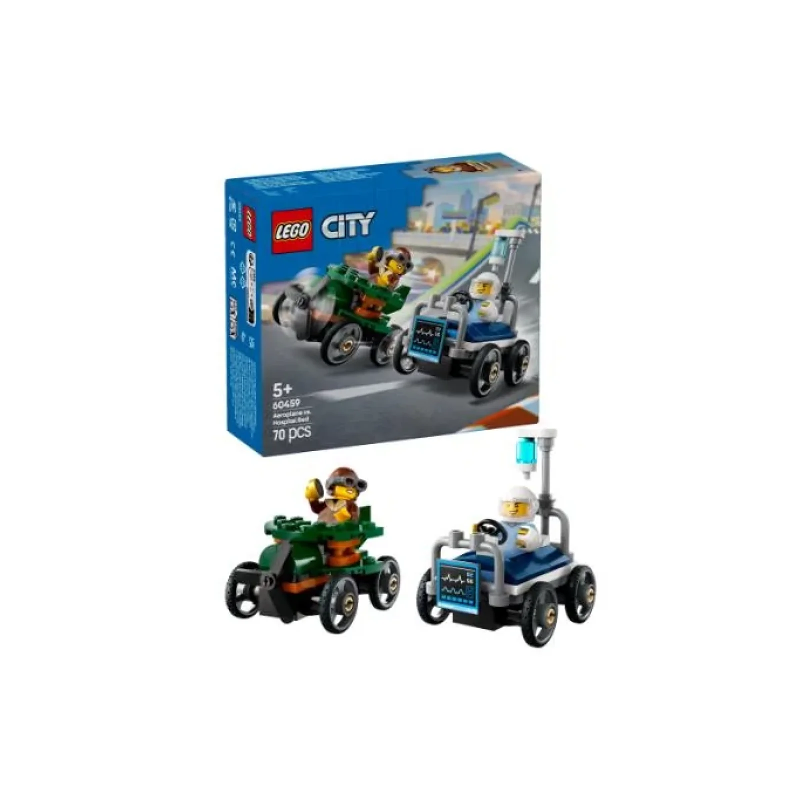 Подаруйте маленьким шанувальникам перегонів набір LEGO® City «Літак проти лікарняного ліжка» (60459) для дітей віком від 5 років. Ця цікава іграшка автомобільних перегонів має 2 безмоторні транспортні засоби в наборі й 2 мініфігурки. Діти можуть виставити пілота в літаку, що злітає, проти пацієнта на напрочуд швидкому лікарняному ліжку. Хто переможе? Займайте своє місце для легендарних міських перегонів! У цьому наборі для перегонів безмоторного транспорту LEGO міститься покроковий друкований посібник зі складання. Діти також можуть насолоджуватися веселою будівельною пригодою з додатком LEGO Builder, де вони можуть масштабувати й обертати моделі в 3D, відстежувати власний прогрес, а також досліджувати й зберігати інші ігрові набори. Ігрові набори LEGO City містять круті транспортні засоби, реалістичні споруди і кумедних персонажів, які надихають на творчу гру без обмежень. Діти можуть поєднувати цей набір із безмоторним транспортом LEGO City з іншими із цієї серії (продаються окремо), щоб розширювати світ ігрових можливостей.