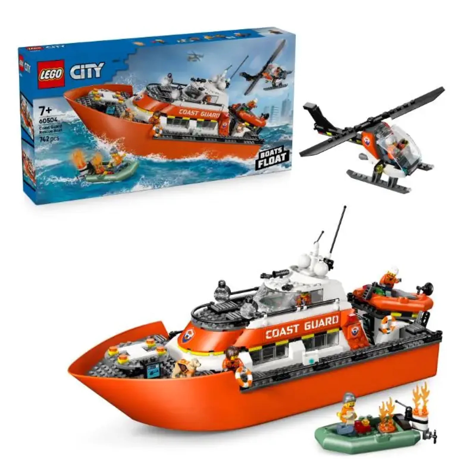 Опис для покупця (максимум 1000 символів) Діти від 7 років можуть вирушити в морські пригоди з іграшкою LEGO® City Рятувальний катер і гелікоптер берегової охорони (60504). Цей багатофункціональний плавучий човен зі знімними палубами забезпечує легкий доступ до містка управління кораблем, спальних приміщень та кухні. Діти можуть спустити рятувальну шлюпку з рампи або піднятися в небо з бортового вертолітного майданчика на крутому вертольоті. Набір також містить другу шлюпку, полум?я LEGO, 5 мініфігурок і фігурку собаки для творчої гри та розповіді історій. Усі 3 човни тримаються на воді. Цей набір іграшкових транспортних засобів для пошуково-рятувальних операцій стане чудовим сюрпризом або подарунком на день народження для хлопчиків і дівчаток, які люблять інтерактивні ігри. Додайте цей набір до інших (продаються окремо) з серії LEGO City для ще більш захопливих пригод. З цим набором LEGO для гри уяви діти можуть насолоджуватися інтуїтивним складанням у додатку LEGO Builder, збільшуючи та обертаючи моделі за допомогою 3D-інструкцій, а також зберігаючи та відстежуючи прогрес. Набір містить 742 деталі.