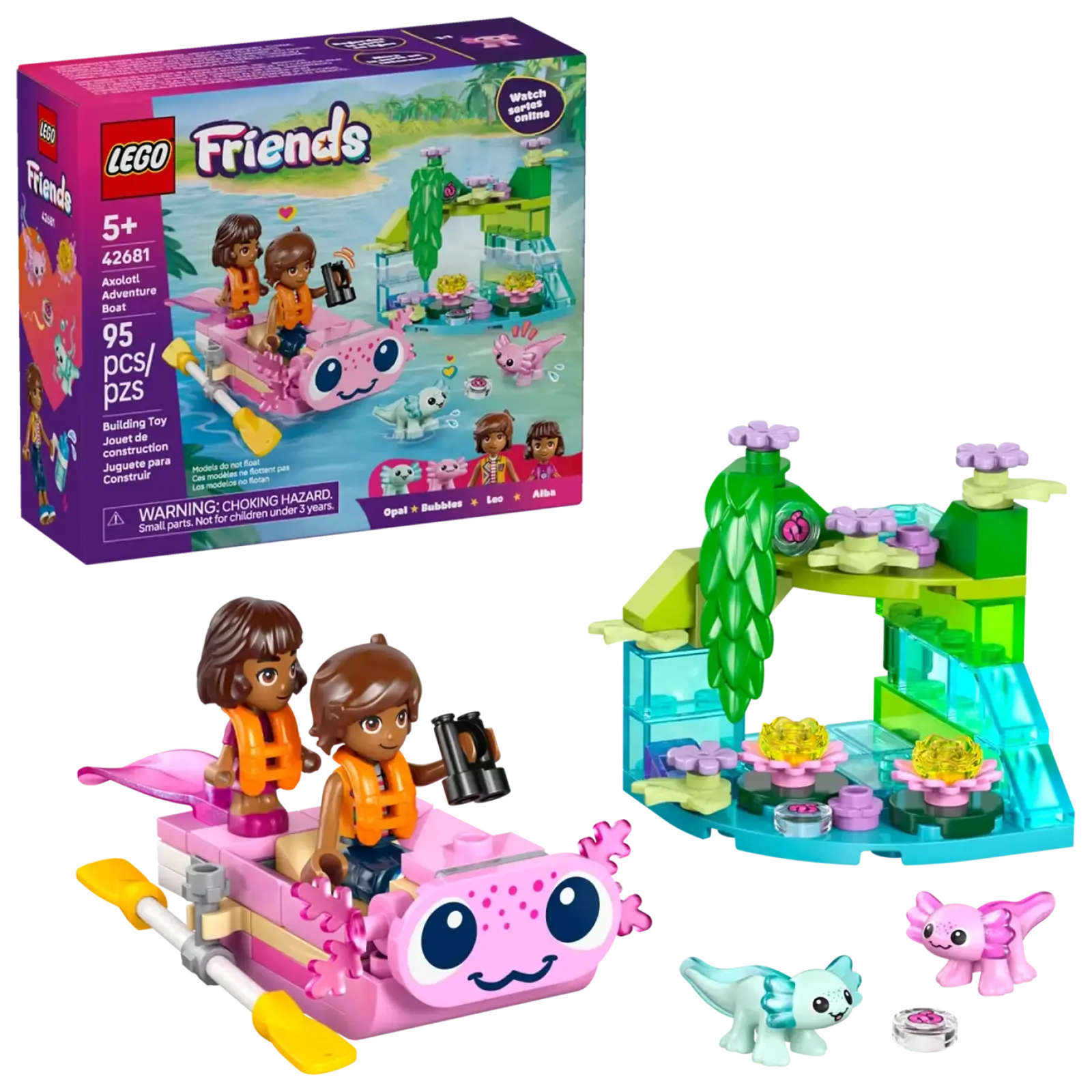 Надихніть на розповідь історій за допомогою милого дослідницького човна на тему аксолотля з хитливим хвостом, веслами та двома рятувальними жилетами.