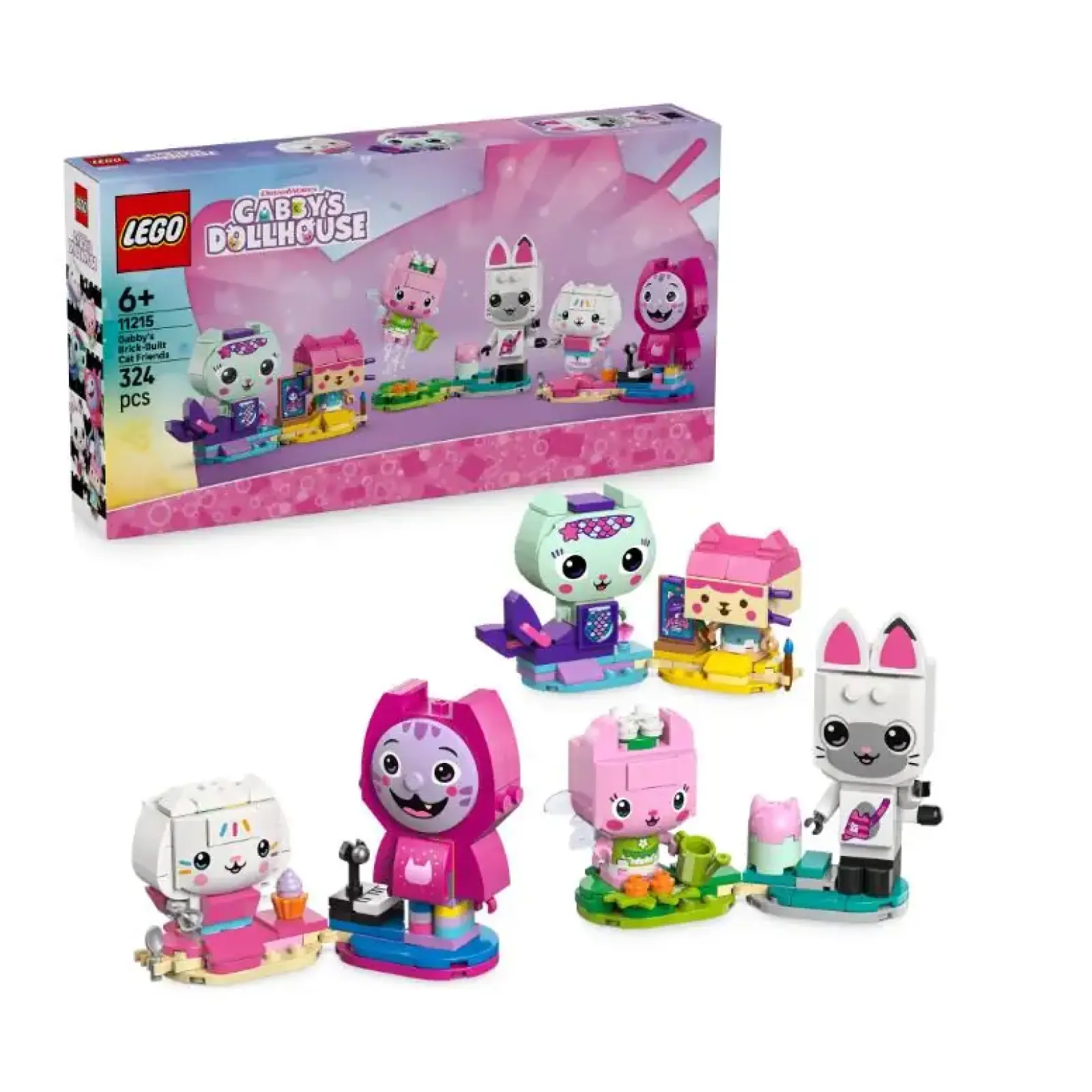 Створіть веселу атмосферу з набором «Друзі-коти Ґаббі з кубиків» (11215) — конструктором для сюжетних ігор, що включає 6 персонажів із «Лялькового будиночка Ґаббі» для дівчаток і хлопчиків віком від 6 років. Діти можуть насолоджуватися нескінченними, корисними для розвитку розвагами, створюючи знайомі фігурки, розігруючи улюблені історії та поринаючи у власні уявні пригоди. Набір включає 6 фігурок для складання, кожна з яких має аксесуари з телесеріалу. Нявка має діамант, Доця-Бокс — картину Ґаббі, Котофея — лійку, Пандолап — ляльковий будиночок, Кексик — торт, а Деніел Джеймс «DJ» Нявкіт має піаніно. На кожній основі вміщується 2 знімні фігурки. Цей милий набір для дівчаток і хлопчиків стане чудовою ідеєю подарунка для шанувальників «Лялькового будиночка Ґаббі». А користуючись додатком LEGO® Builder, діти можуть будувати більш упевнено. Це дозволяє їм збільшувати, обертати в 3D й відстежувати свій прогрес за допомогою простих цифрових інструкцій. Набір містить 324 деталі.