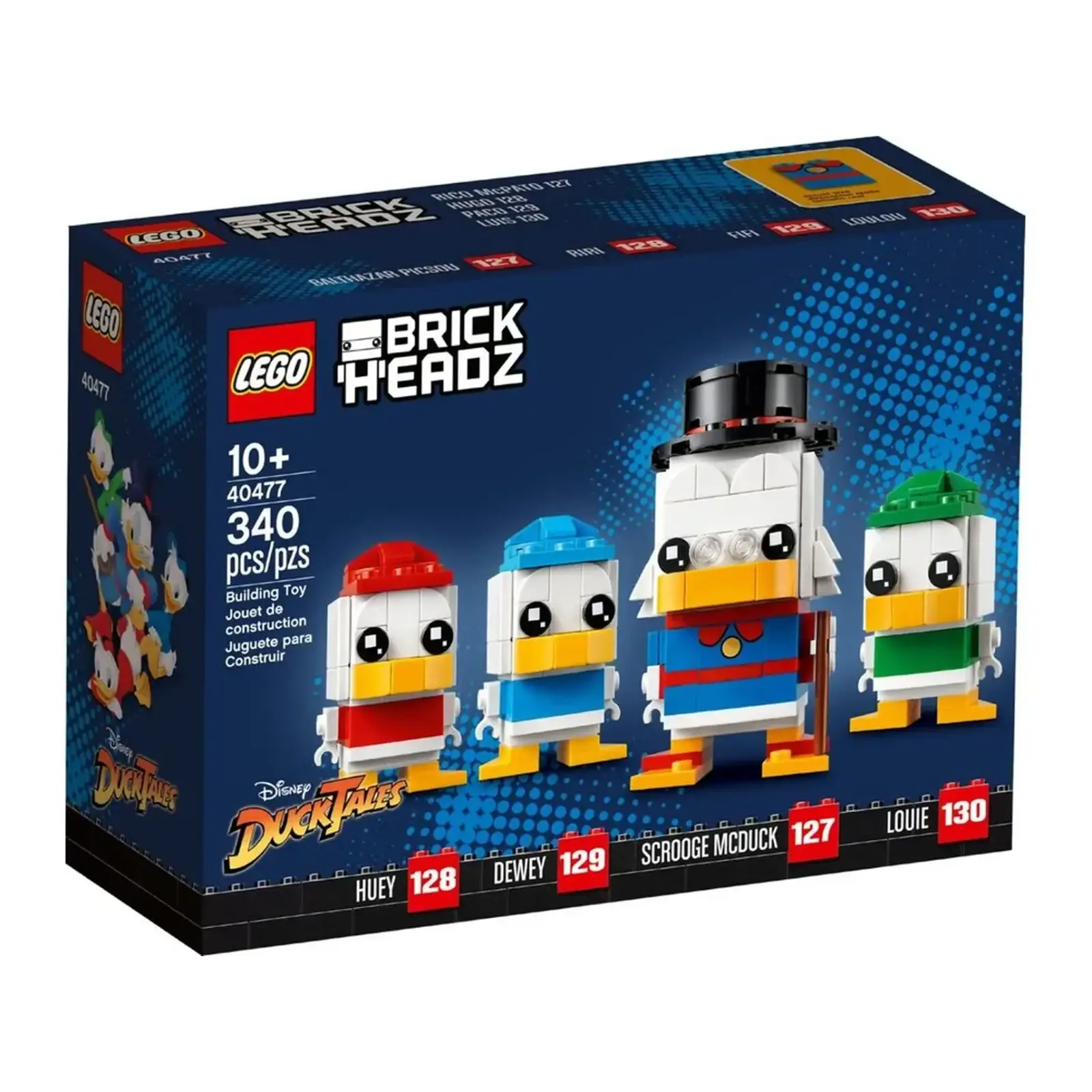 Колекційний конструктор з класними інтерпретаціями LEGO BrickHeadz легендарного Діснея Скруджа Макдака та його онукових племінників, каченят Хьюї, Дьюї та Луї. Є чудовим подарунком для шанувальників Лего, колекціонерів БрікХедс та фанатів Disney у віці від 10 років.