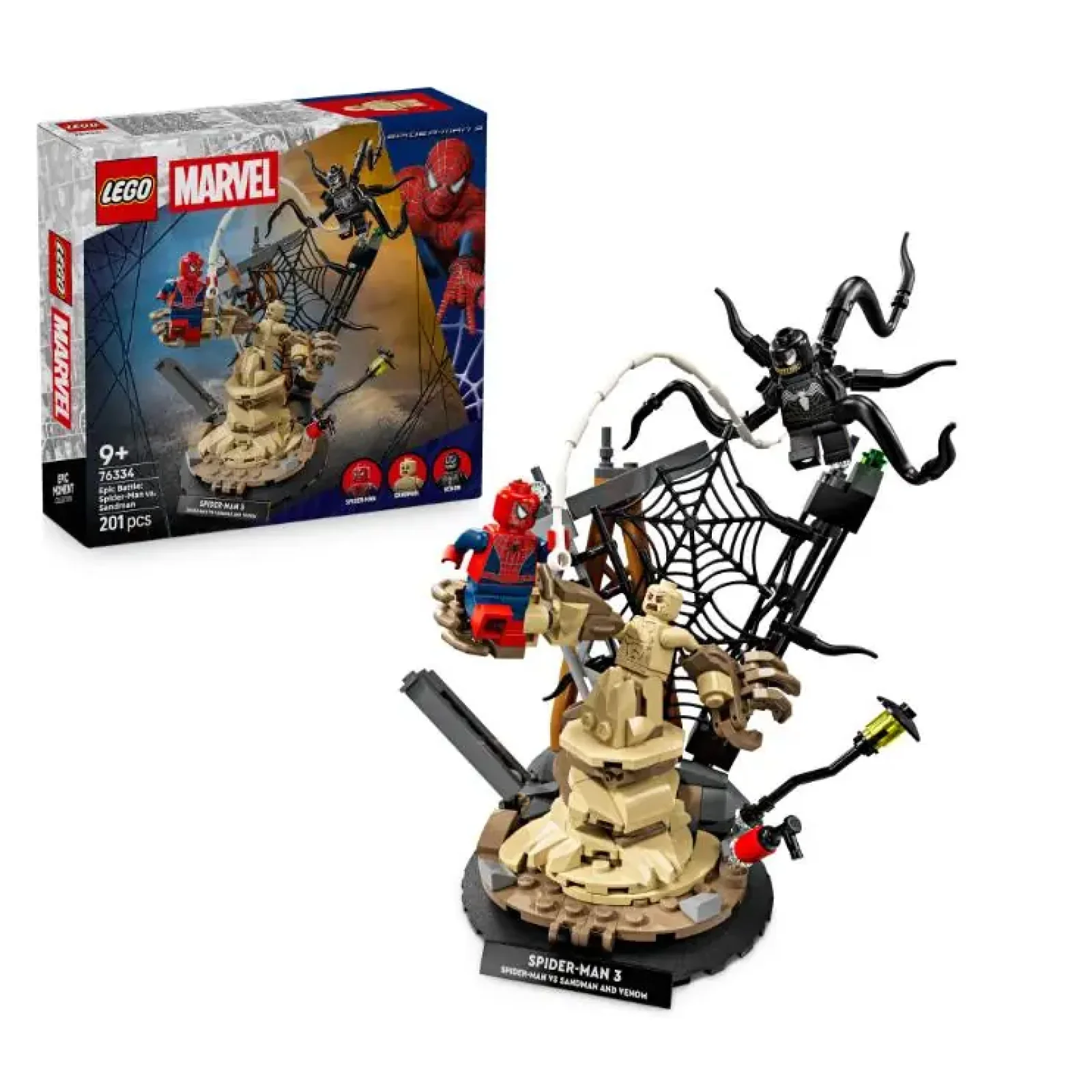 Оживіть фільм Marvel Studios «Людина-павук 3» з набором LEGO® ? Marvel Легендарна битва: Людина-павук vs. Піщана людина (76334) для дітей віком від 9 років. У наборі представлені 3 культові мініфігурки — Людина-павук, Веном і Піщана людина — для епічних сюжетних пригод і неймовірних можливостей для демонстрування. Набір для конструювання містить зіркових персонажів із фільму й безліч інтерактивних елементів: Людина-павук спускається з вежі на павутині, Піщана людина піднімається з-під уламків із величезною рукою, а Веном атакує чотирма рухомими щупальцями. Діти можуть виставити модель LEGO як декор для кімнати завдяки міцній основі й табличці з іменем або від'єднати мініфігурки, щоб вигадувати власні історії для ігор. Цей набір стане чудовим подарунком до дня народження юних супергероїв, будівельників LEGO й шанувальників сувенірних товарів, присвячених Людині-павуку. А з додатком LEGO Builder діти можуть будувати з упевненістю: масштабувати, обертати в 3D й відстежувати прогрес за допомогою простих цифрових інструкцій. Набір для конструювання містить 201 деталь.