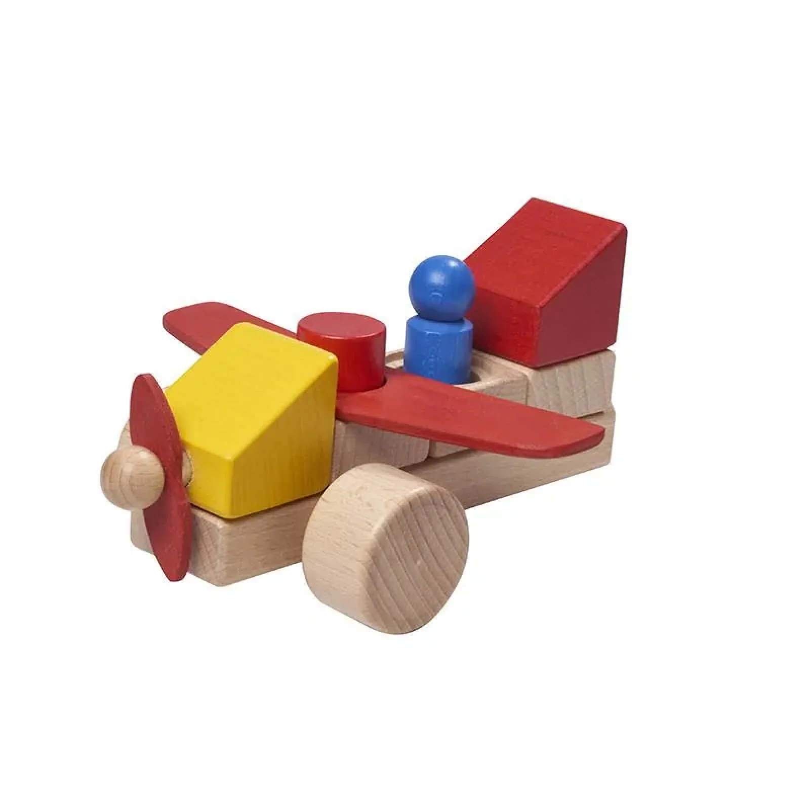 Розвиваючий конструктор для дітей NIC2132, виготовлений з натурального дерева. Набір складається з блоків різної форми і різних кольорів, з'єднавши їх між собою дитина збере свій перший літачок. Розвиває моторику, Способстуют логічно мислити і вчити кольору.
