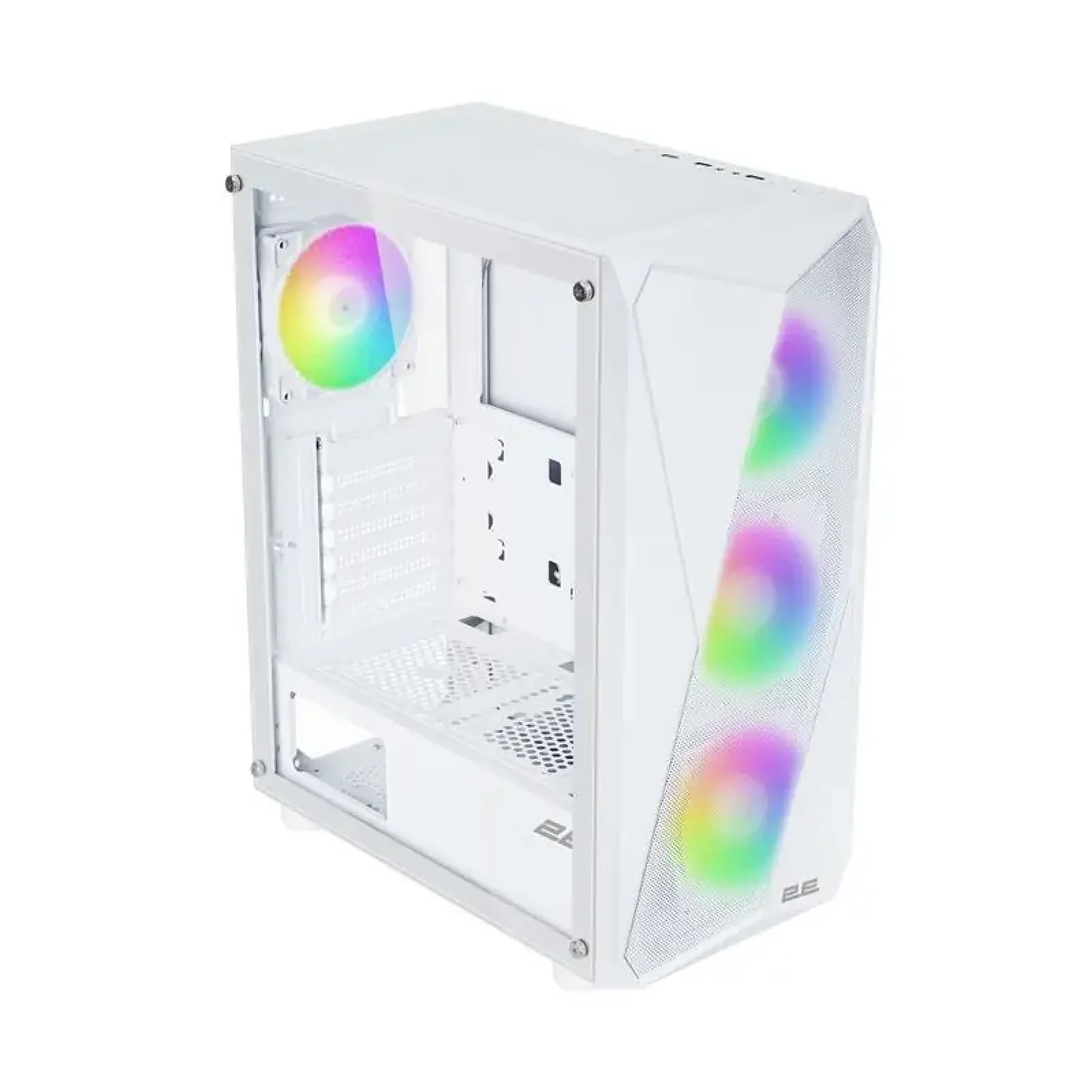 Корпус 2E GAMING Aruba чорного (2E-G3313B) та білого (2E-G3313W) кольорів чудовий варіант для створення сучасної ігрової або робочої станції з активною системою обдування компонентів. У комплекті три вбудованих 120мм ARGB вентиляторів за сталевою сітчастою лицьовою панеллю плюс додатково два 120мм ARGB вентилятори на верхній панелі. Модель відмінно підійде для самостійного та промислового складання завдяки раціонально організованому внутрішньому простору і не складній конструкції.