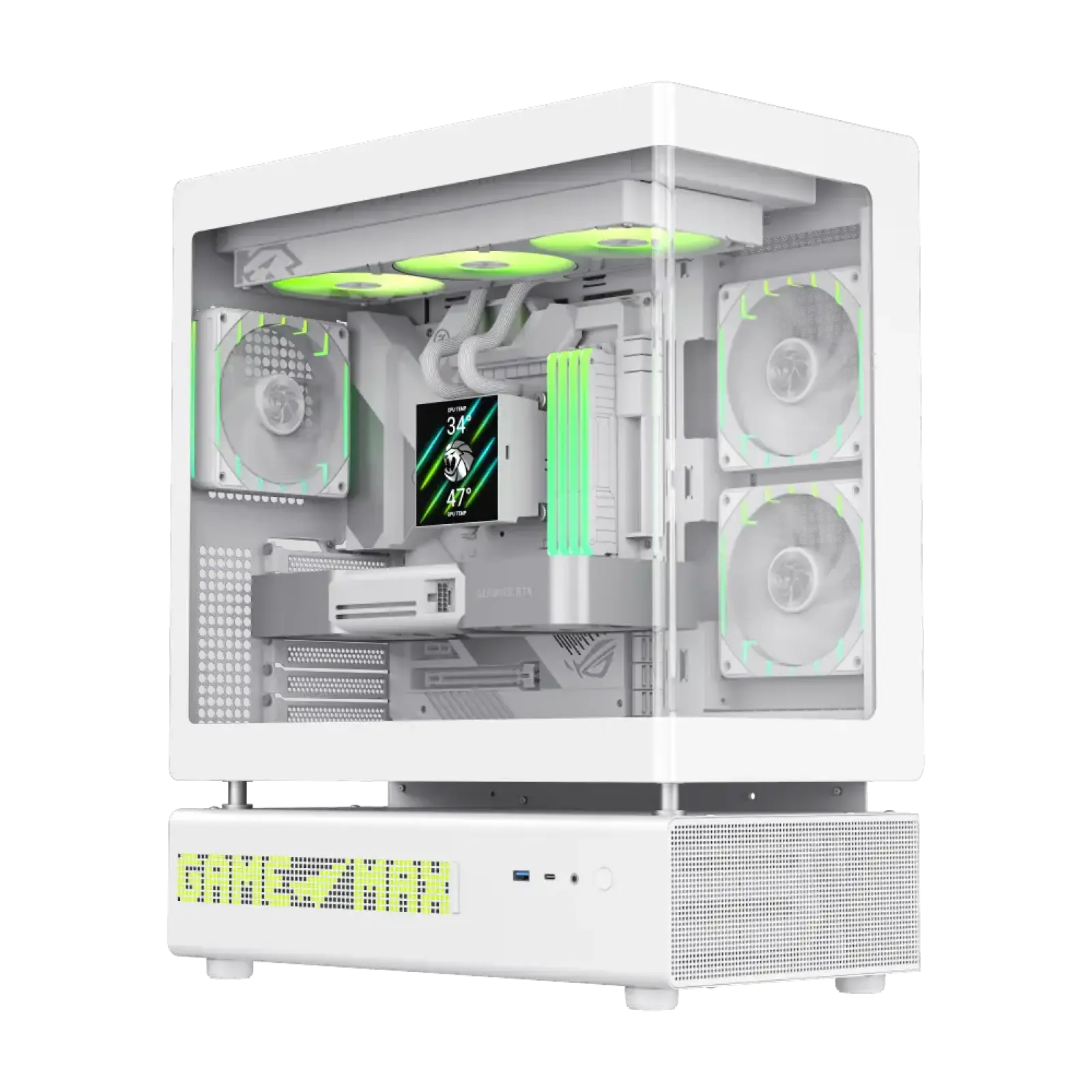 Головною візуальною особливістю GAMEMAX N90 WH є вбудований 512-світлодіодний Dot Matrix дисплей на фронтальній панелі. Він підтримує відображення системної інформації та створення власних анімацій і візуальних ефектів, перетворюючи корпус на справжній центр уваги вашого сетапу.