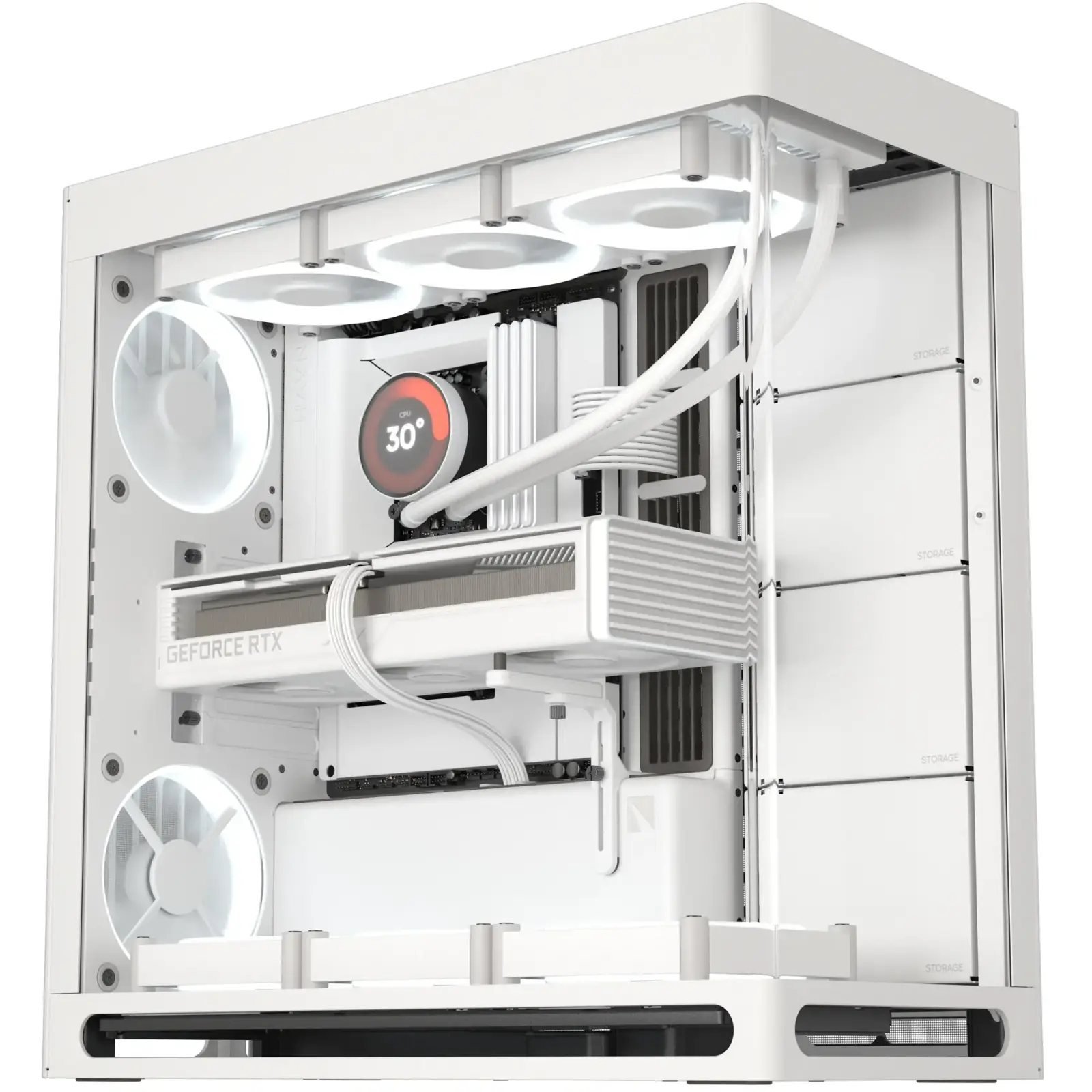 Дзеркальний потік повітря. Додатковий вентилятор у нижній частині задньої панелі спрямовує холодне повітря безпосередньо до відеокарти, ідеально балансуючи впуск і випуск повітря. Це забезпечує максимальну продуктивність і допомагає підтримувати чистоту системи без пилу.