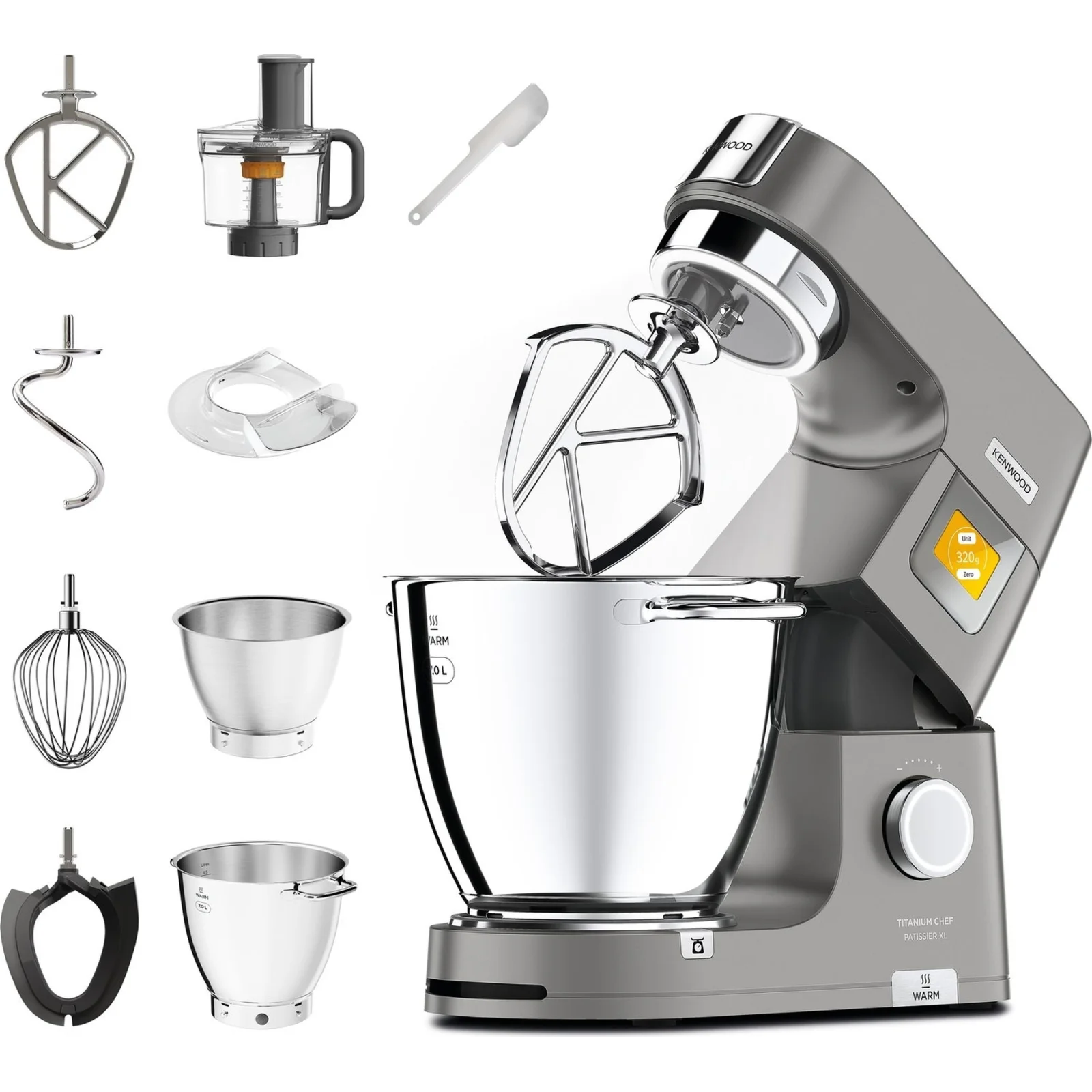 Kenwood Titanium Chef Patissier XL KWL90.244SI - це високотехнологічна кухонна машина преміум-класу, створена для тих, хто прагне абсолютного контролю над процесом приготування та професійного результату вдома. Вона поєднує потужність, інтелектуальні функції та розширену комплектацію, відкриваючи новий рівень зручності у випічці та кулінарії.