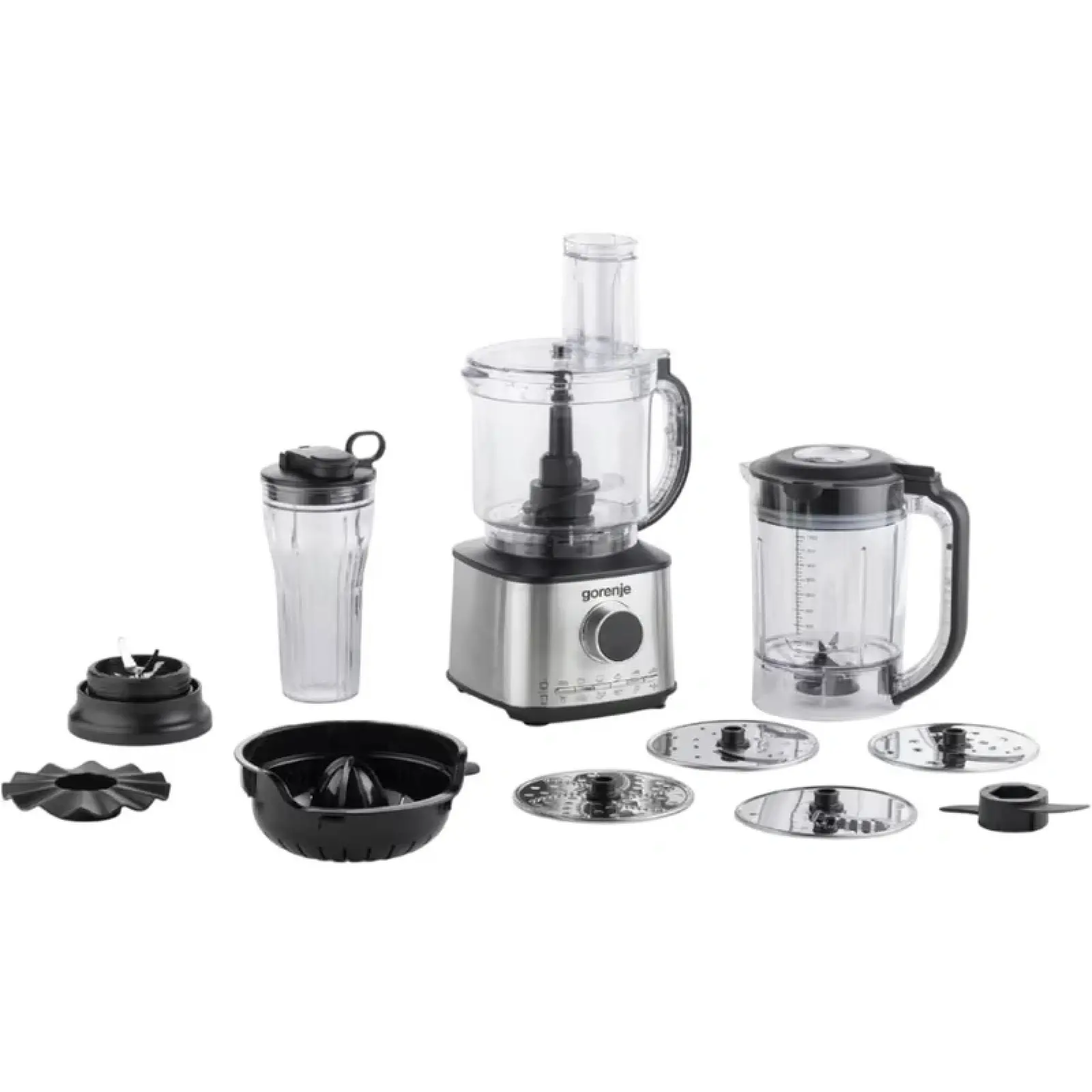 Gorenje SBR1500E — це справжній мультифункціональний комбайн, який здатен замінити цілу низку кухонних приладів. Завдяки потужному двигуну 1500 Вт та величезній кількості насадок, цей пристрій легко справляється з подрібненням, змішуванням, збиванням, шинкуванням і навіть віджиманням соку. Елегантне поєднання нержавіючої сталі та чорного пластику робить його не лише практичним інструментом, а й стильним елементом кухонного інтер’єру.