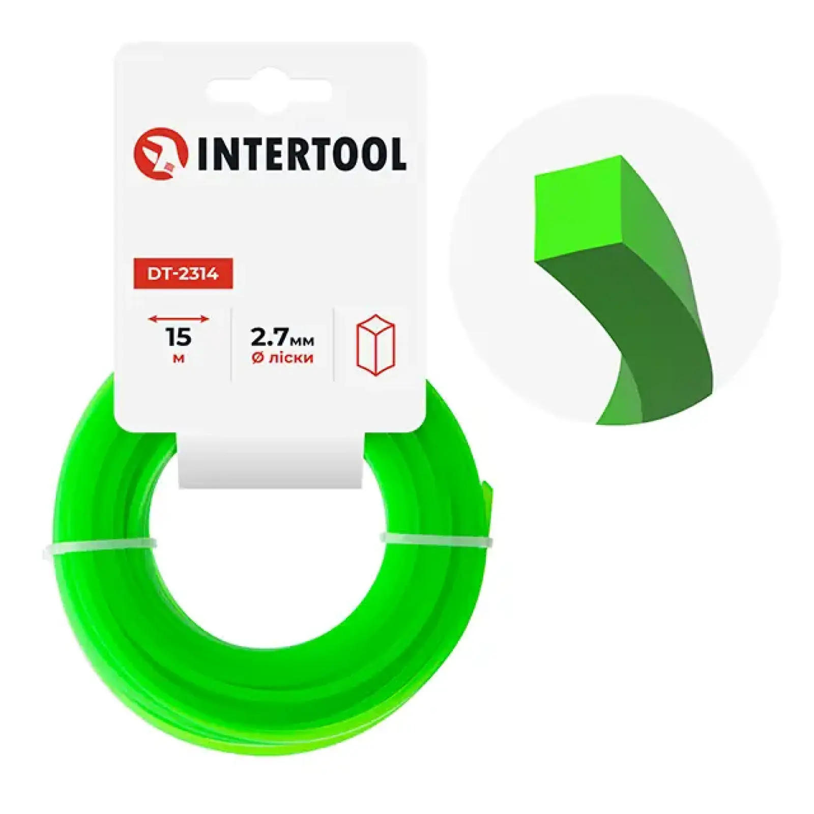Волосінь для тримера чи мотокоси являє собою незамінний аксесуар для догляду за садом, газоном, присадибною ділянкою тощо. Ця волосінь має форму "квадрат" і поставляється у зручному мотку, довжиною 15 метрів.